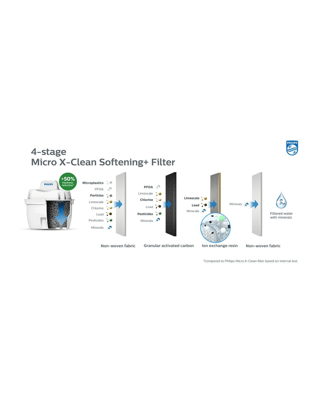 These Philips Micro X-Clean Soft Filters let you keep getting crisp and pure-tasting water from your Philips Micro X Jug. With 50% more ion exchange resins, the filter is with enhanced water softening performance for hard water areas.