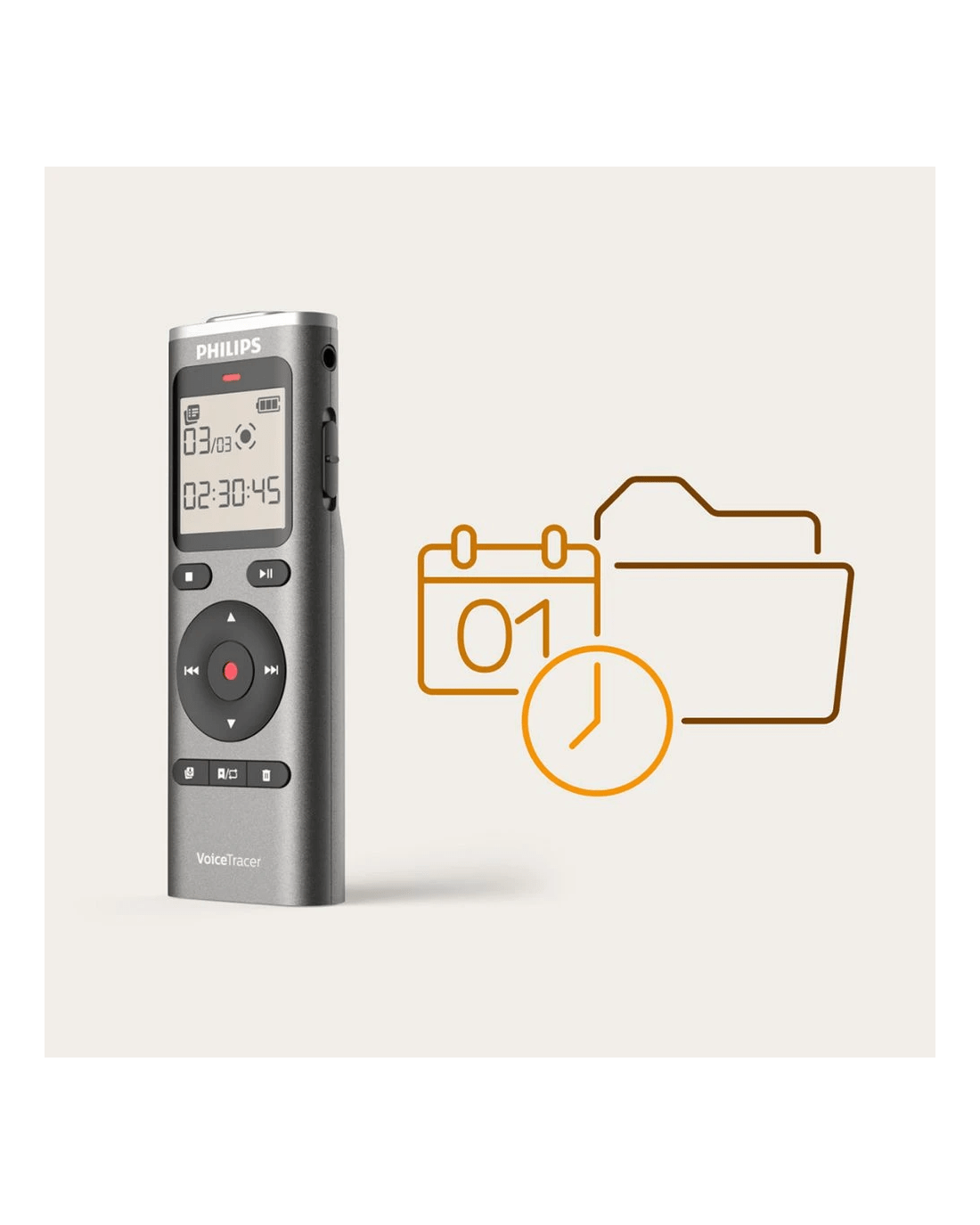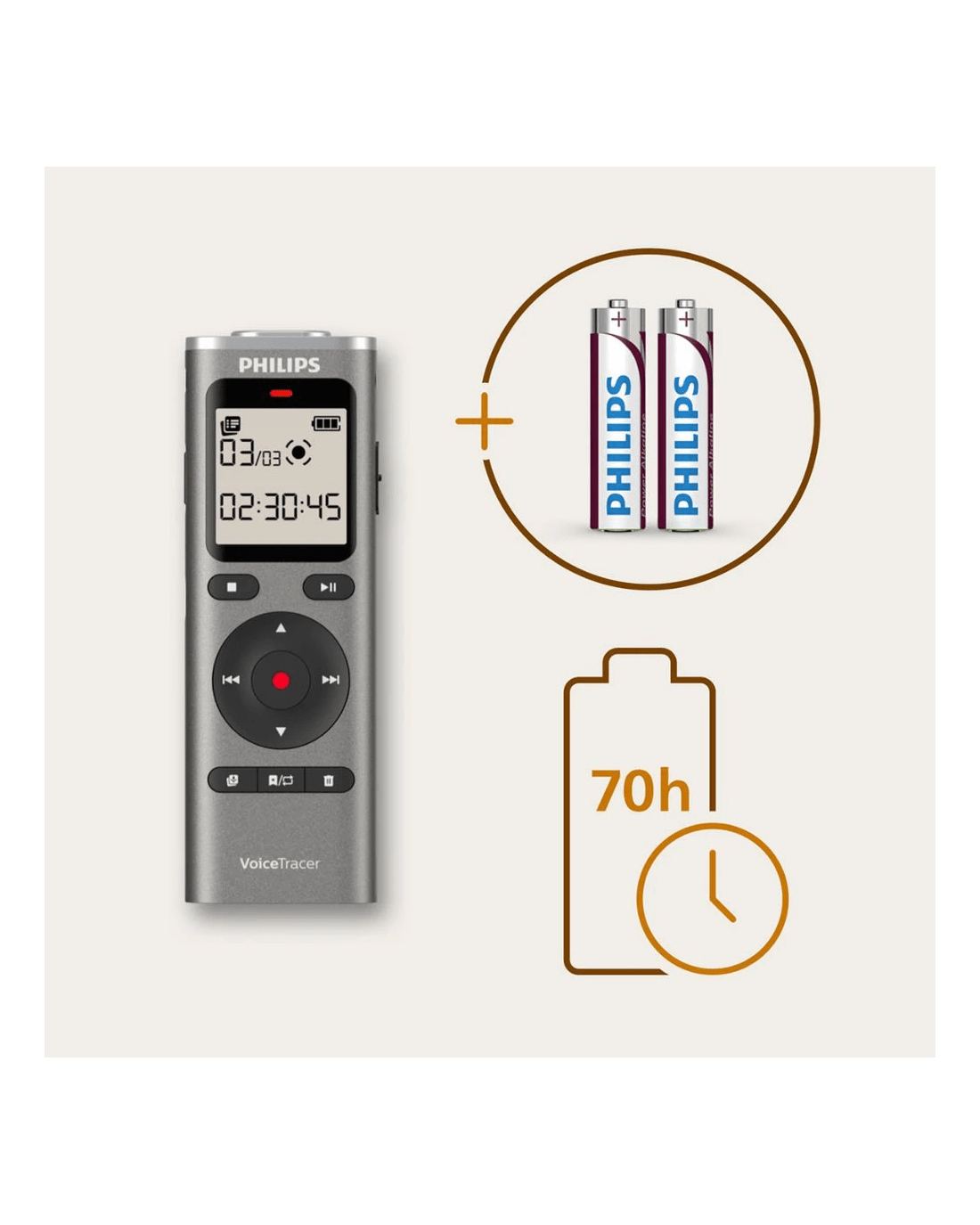 The Philips VoiceTracer DVT1170 is designed for easy, reliable audio recording with one-touch operation. Whether you're capturing interviews, meetings, or personal notes, it delivers clear sound quality and a smooth user experience. With intuitive features like voice-activated recording and PC connectivity, sharing your recordings is just as simple as making them.