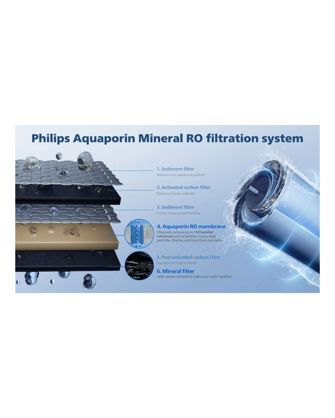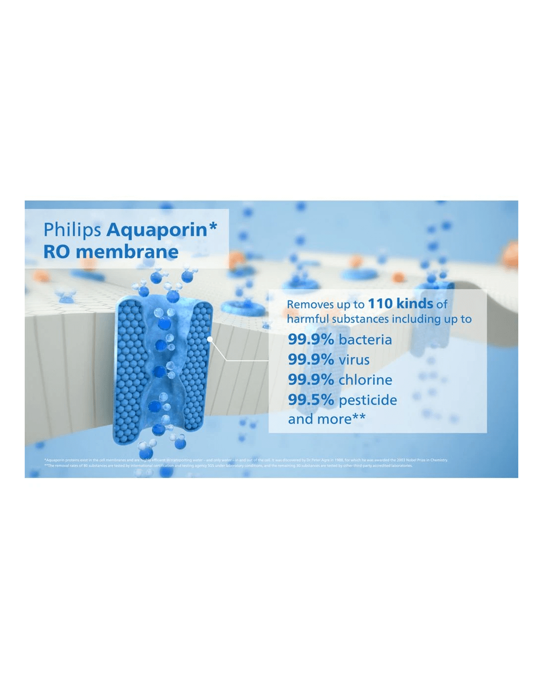 - This Phillips Water Station incorporates aquaporin proteins to replicate nature's water filtration process, making it energy-efficient and effective in removing bacteria, viruses, lead, pesticide, chlorine, and more.