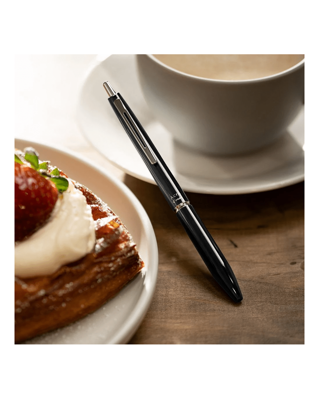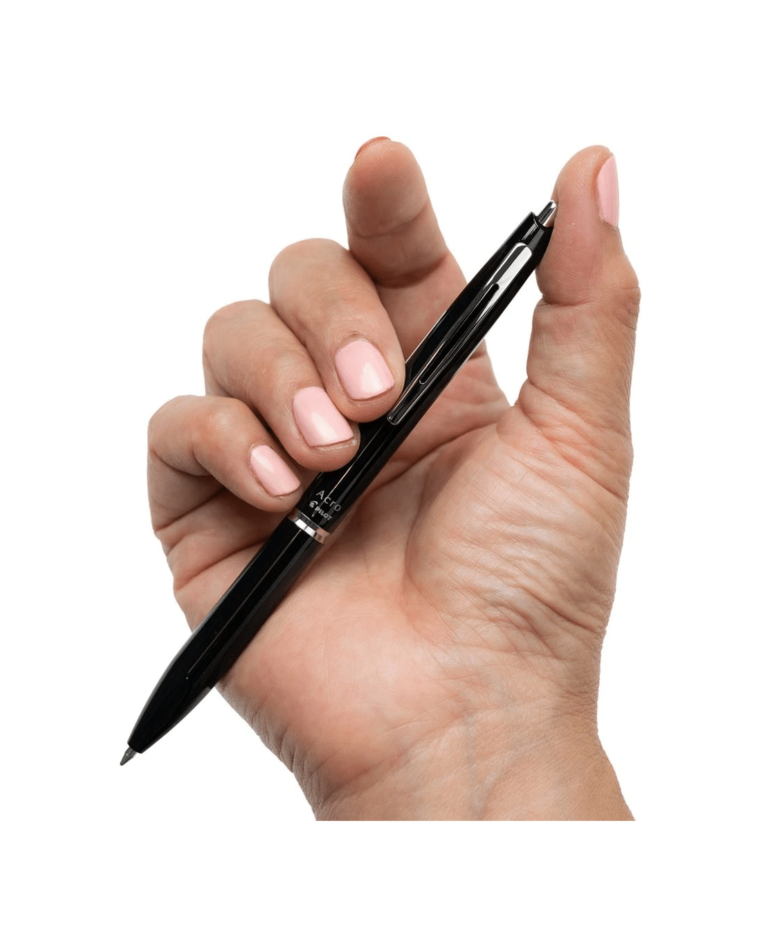 This PILOT Acro 300 pen is perfect for students, professionals and creatives alike. It features a smooth extra fine 0.5 mm tip, lightweight resin grip and barrel and is accented with a strong coated metal clip and premium bevelled ring accents. Plus, the refillable Hybrid black ink is vivid and smooth like a gel but is also water-resistant and archival to ensure your work will leave a lasting impression.