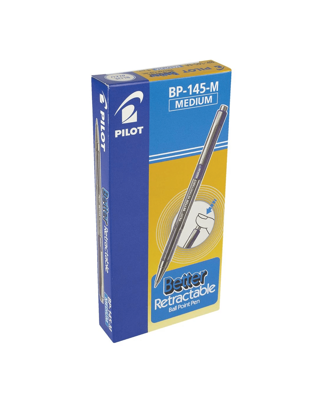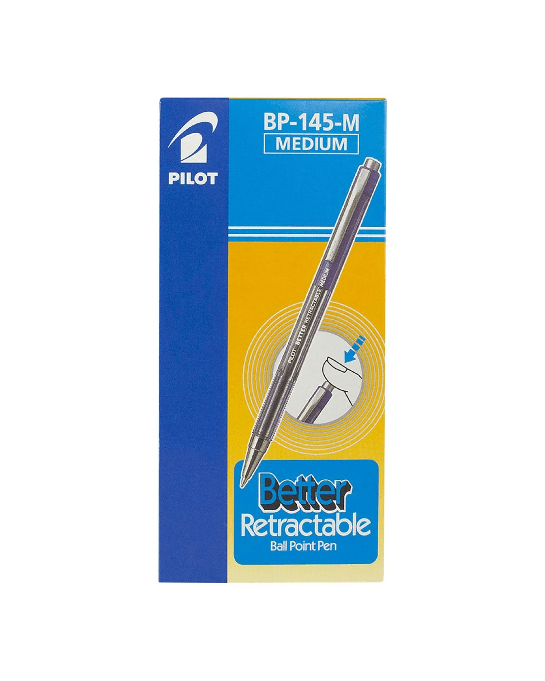 These PILOT BP-145 Medium Retractable Ballpoint Pens are a reliable ballpoint pen finished with a stainless steel tip and tungsten carbide ball. The ribbed grip ensures writing comfort and the retractable tip stops the ink from drying out.