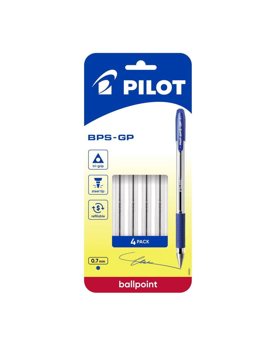Sold by OfficeworksPILOT BPS-GP Ballpoint Pen Fine 0.7mm Blue 4 Pack
