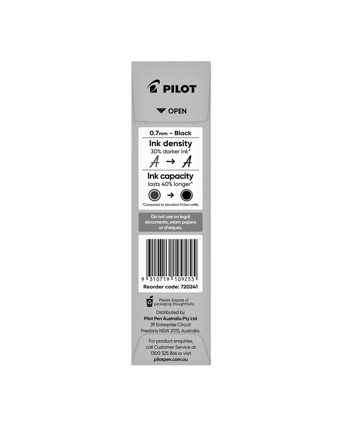 Sold by OfficeworksPILOT FriXion Advanced Erasable Gel Refill 0.7mm Black 2 Pack