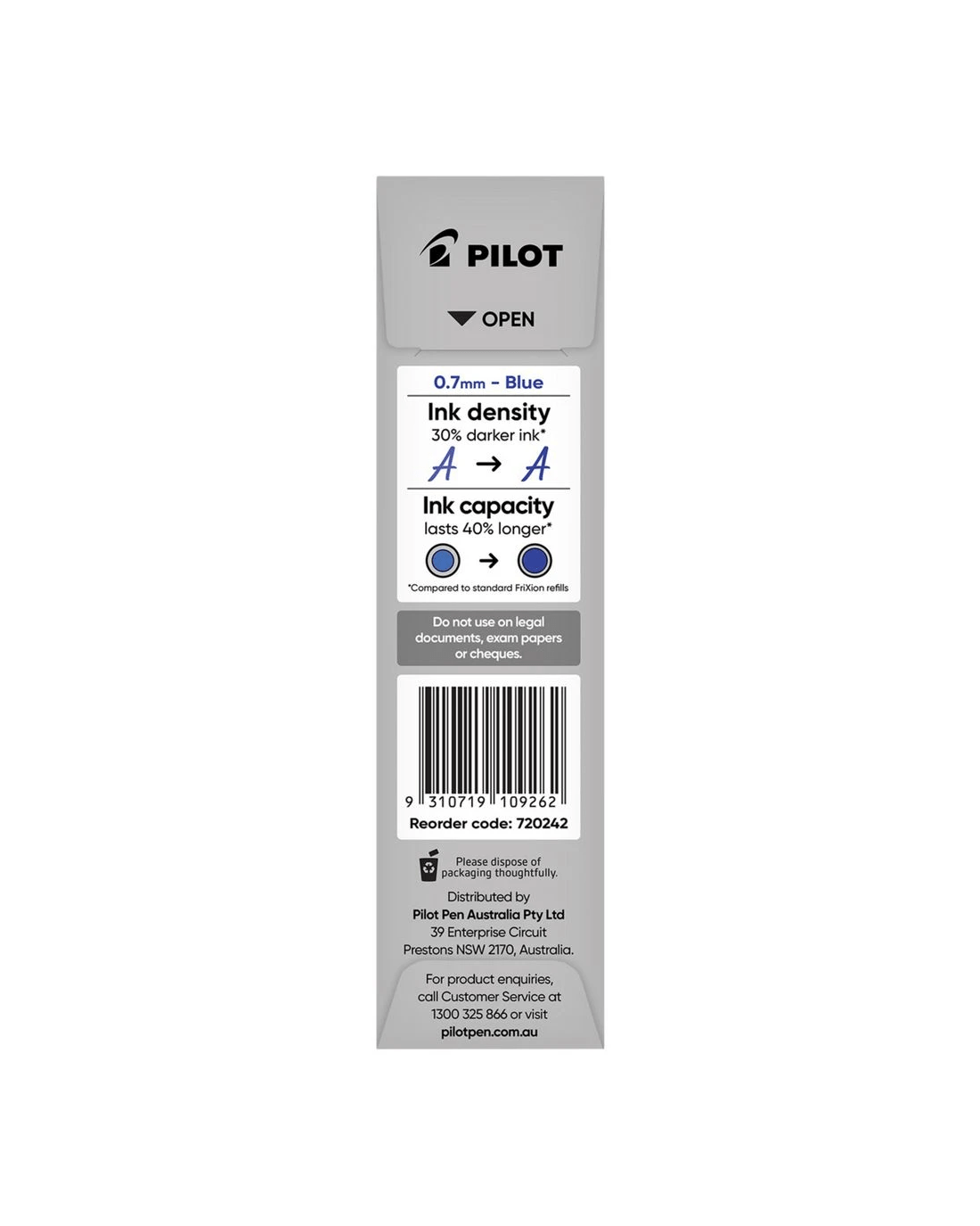Sold by OfficeworksPILOT FriXion Advanced Erasable Gel Refill 0.7mm Blue 2 Pack