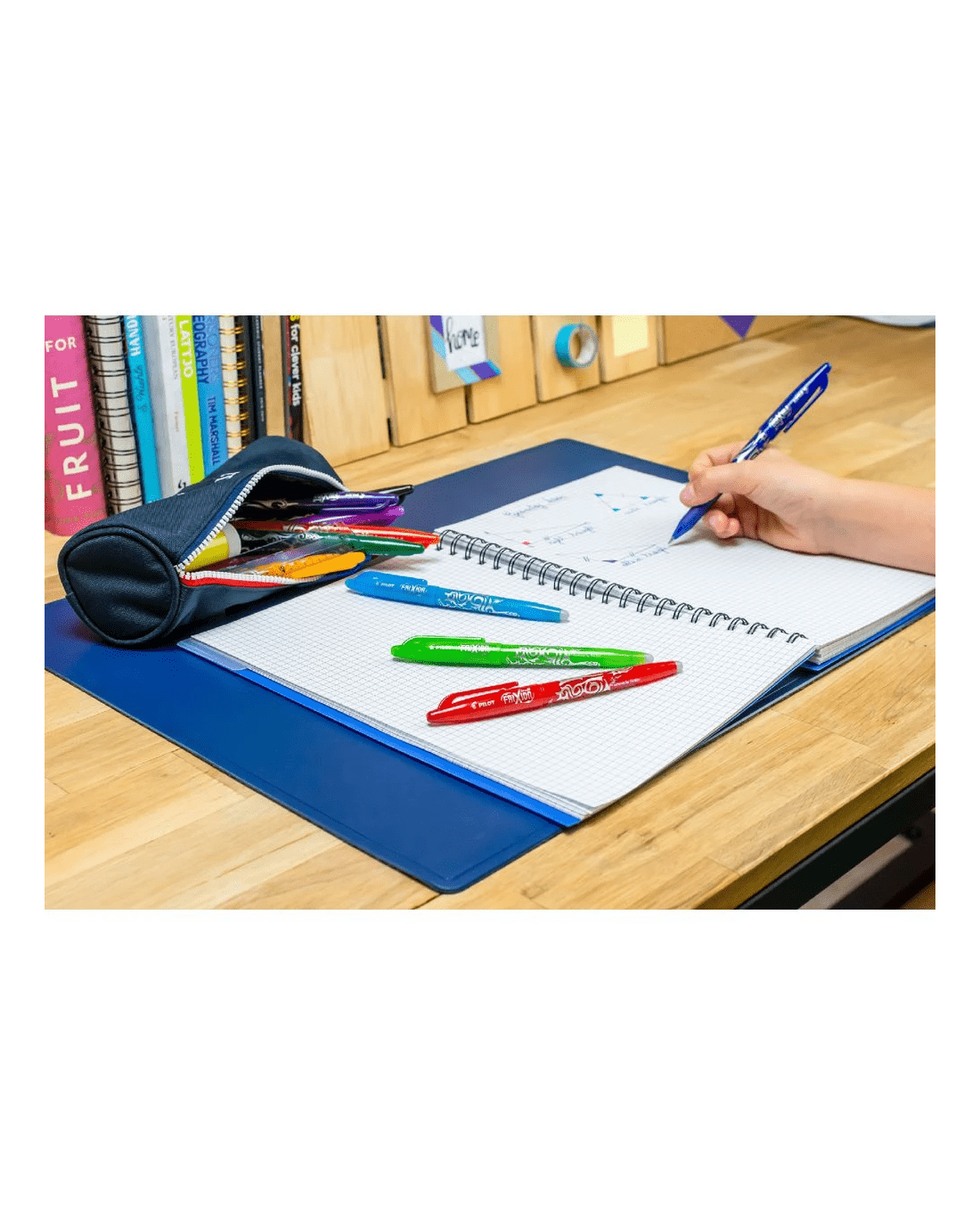 The PILOT Frixion Ball Fine Erasable Gel Pen is an innovative gel pen which allows you to erase and instantly rewrite over your mistakes. Simply rub the silver rubber tail over your mistakes and the friction generated turns the ink invisible.