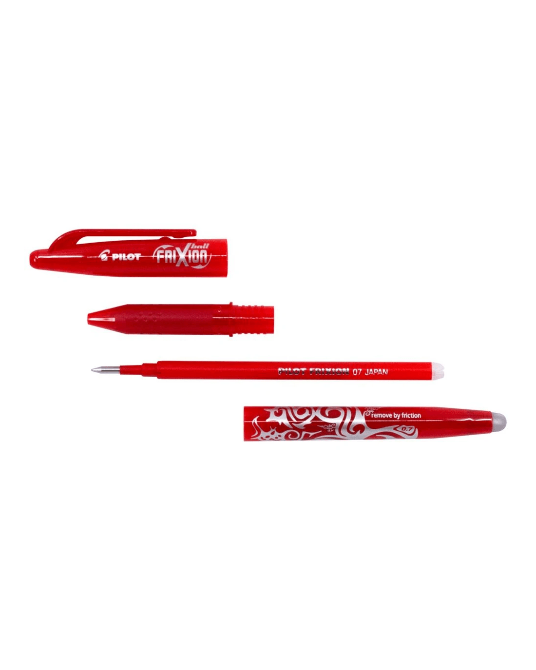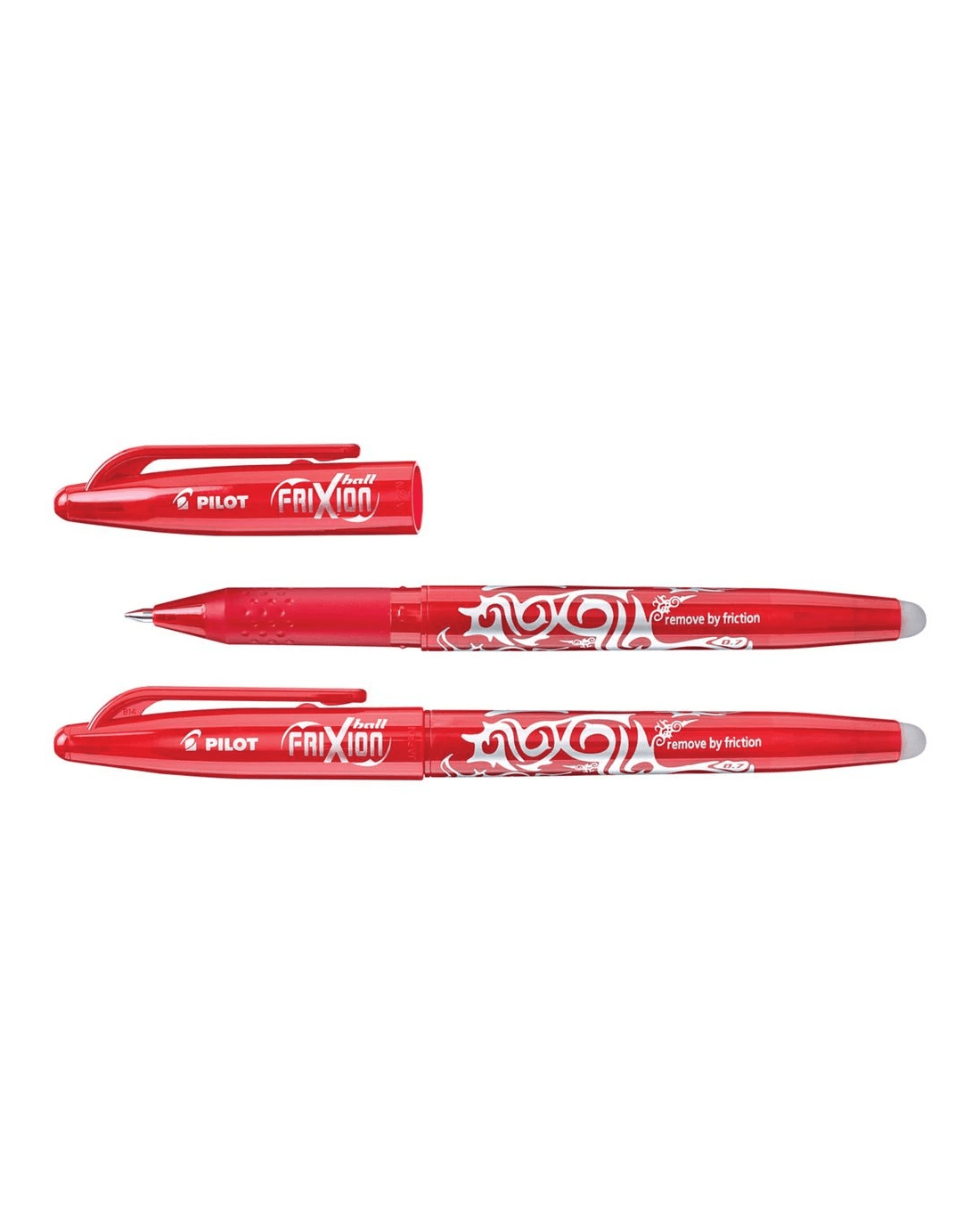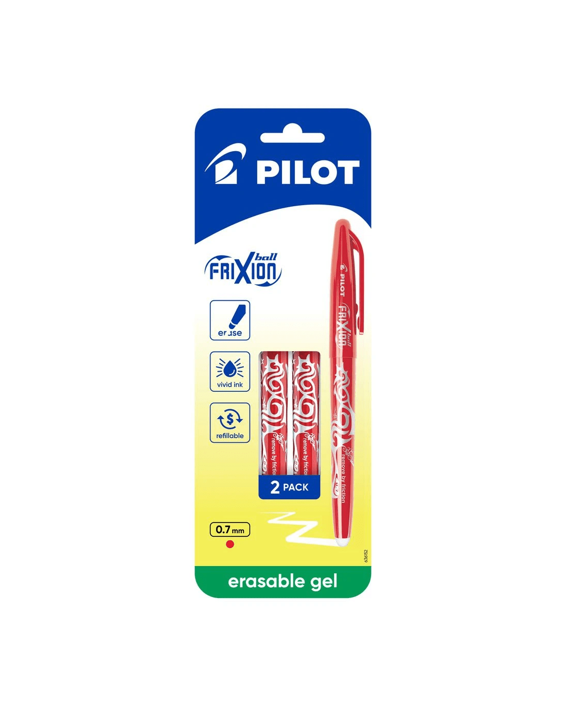 PILOT FriXion Ball Erasable Gel Pen 0.7mm Red 2 Pack is perfect for everyday use at school or home. This FriXion erasable pen features innovative friction ink technology, letting you erase mistakes cleanly and rewrite instantly. The 0.7mm tip and the rub-out gel pen ink deliver smooth, vibrant lines. Ideal for those who need a red erasable pen that keeps notes neat. This pack comes with two Red pens. Each pen is refillable with PILOT BLS-FR refills, offering a cost-effective solution for everyday school use.