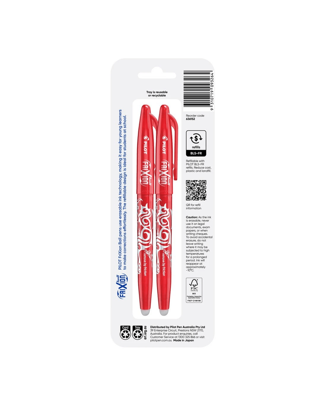 Sold by OfficeworksPILOT FriXion Ball Erasable Gel Pen 0.7mm Red 2 Pack