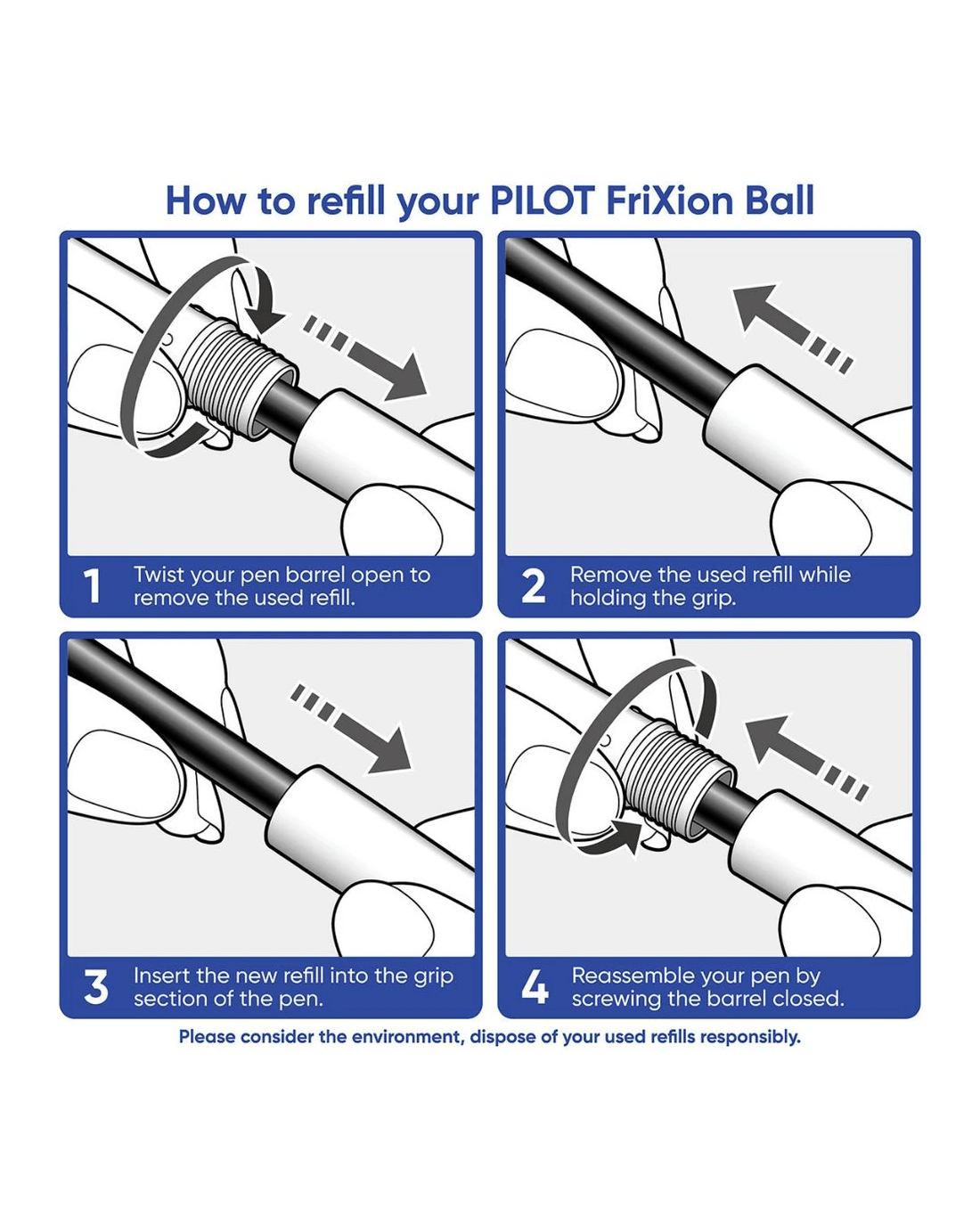 PILOT FriXion Ball Erasable Gel Pen 1.0mm Blue 2 Pack is perfect for everyday use at school or home. This FriXion erasable pen features innovative friction ink technology, letting you erase mistakes cleanly and rewrite instantly. Enjoy smooth, vibrant and consistent lines with this rub-out gel pen. Ideal for those who need a Blue erasable pen that keeps notes neat. The 1.0mm tip delivers bold, vibrant lines. This pack comes with two Blue pens. Each pen is refillable with PILOT BLS-FR refills, offering a cost-effective solution for everyday school use.