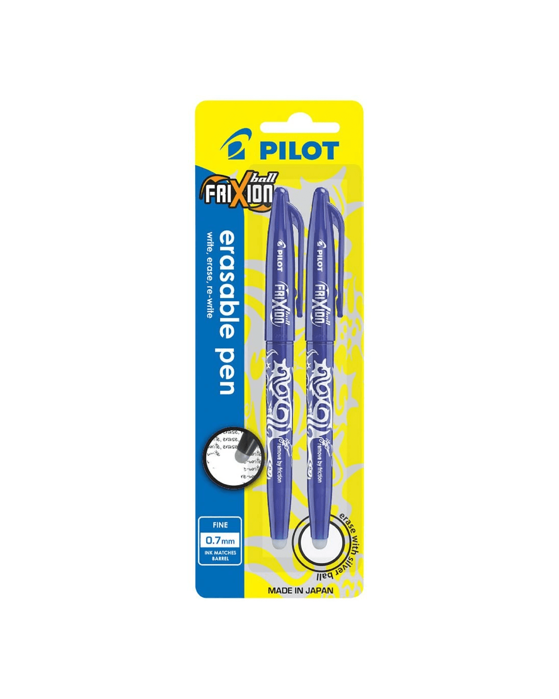 The PILOT Frixion Ball Erasable Gel Pen is an innovative gel pen which allows you to erase and instantly rewrite over your mistakes. Simply rub the silver rubber tail over your mistakes and the friction generated turns the ink invisible. The Frixion is perfect for everyday use, whether it be at home, school or work.