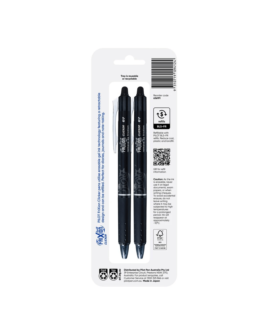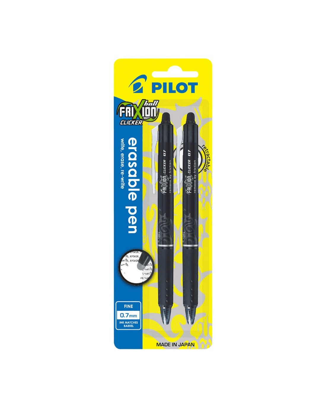 Sold by OfficeworksPILOT FriXion Clicker Erasable Gel Pen 0.7mm Black 2 Pack