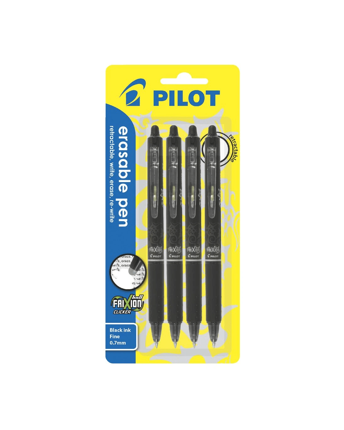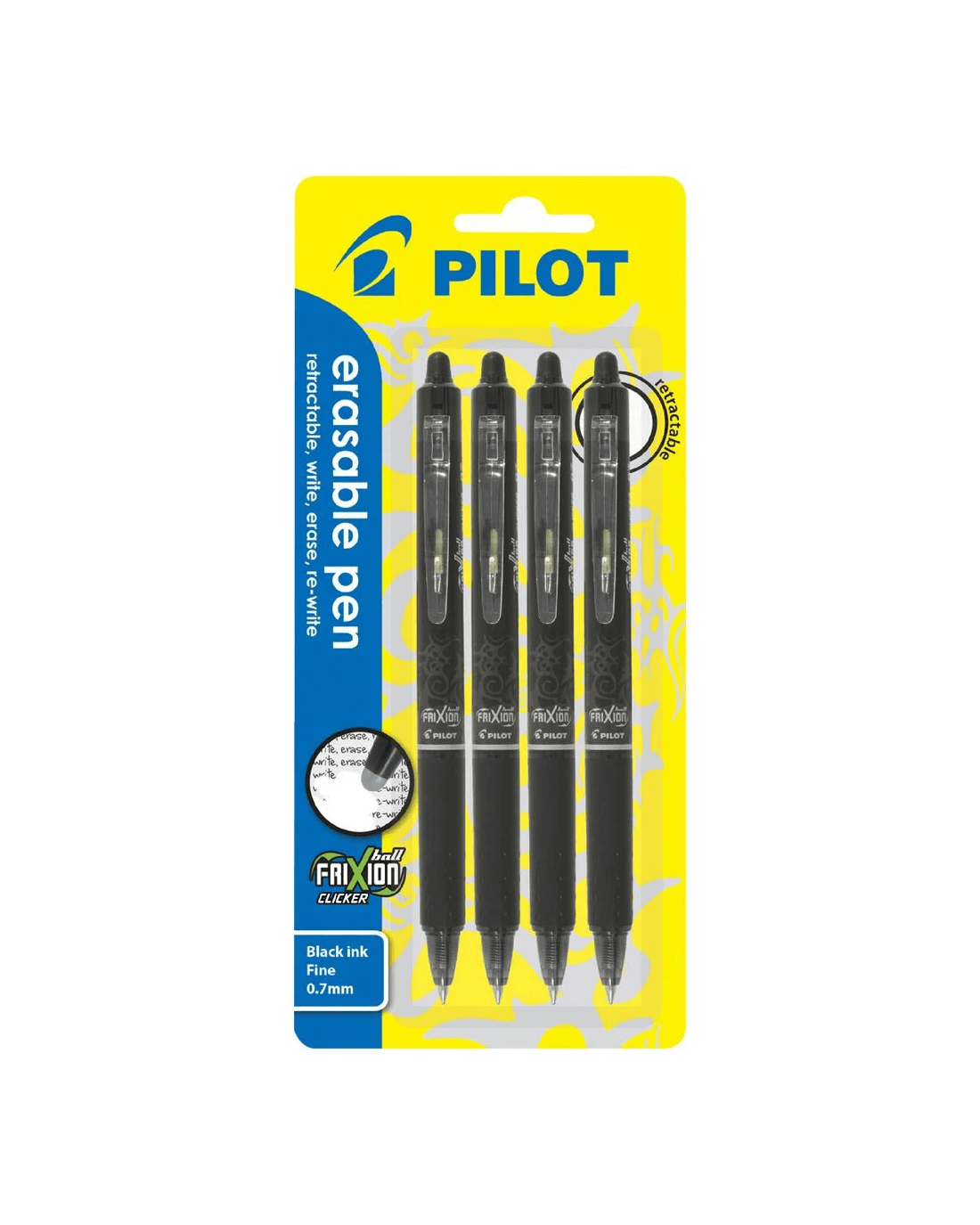 Sold by OfficeworksPILOT FriXion Clicker Erasable Gel Pen 0.7mm Black 4 Pack