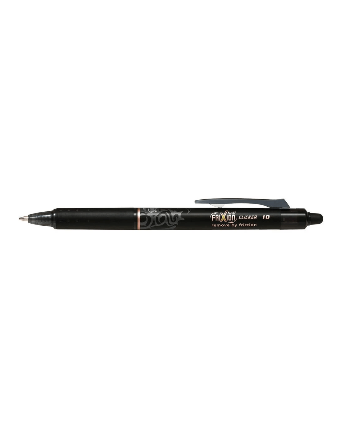 The PILOT Frixion Clicker Erasable Gel Pen is an innovative gel pen which allows you to erase and instantly rewrite over your mistakes. Simply rub the silver rubber tail over your mistakes and the friction generated turns the ink invisible.