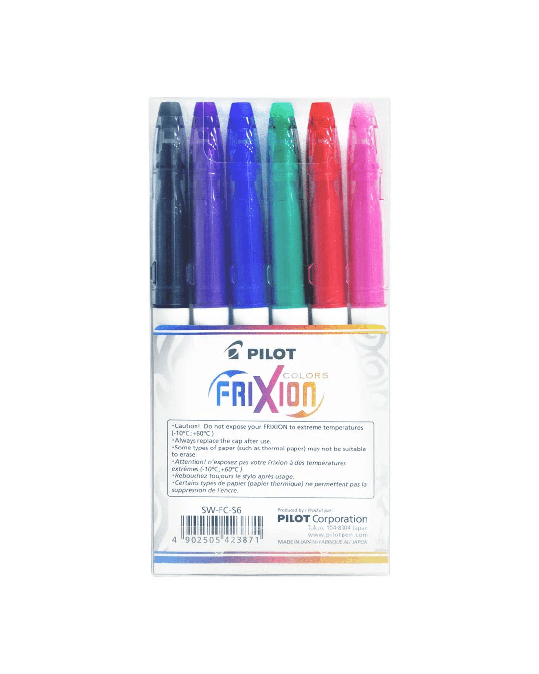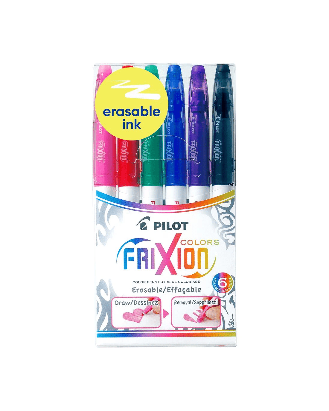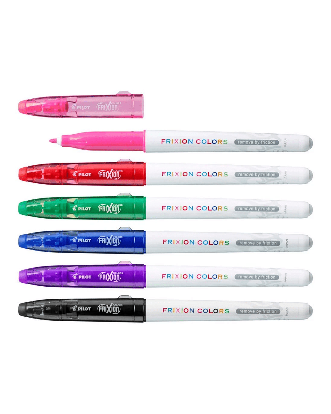 PILOT FriXion Colors Erasable Markers Assorted 6 Pack make planning and organising easy. Perfect for diaries, planners, and bullet journals, they come in a wide range of bright colours so you can colour-code tasks, highlight important dates, or add a creative touch to your pages. The special thermo-sensitive ink lets you erase mistakes cleanly with the eraser on the cap—no smudges, no damage to paper. With a smooth 2.5mm bullet tip, FriXion Colors give you bold, consistent lines that make staying organised fun, flexible, and stress-free. The colours included in this pack are Black, Violet, Blue, Green, Red and Pink.