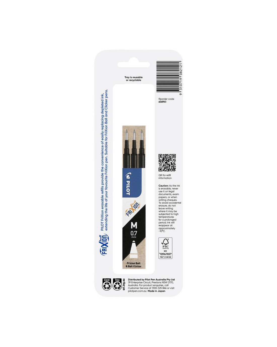 PILOT FriXion Erasable Gel Ink Refill 0.7mm Black 3 Pack