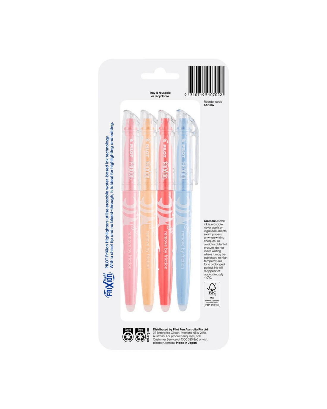 Sold by OfficeworksPILOT FriXion Light Natural Erasable Highlighter Assorted 4Pk