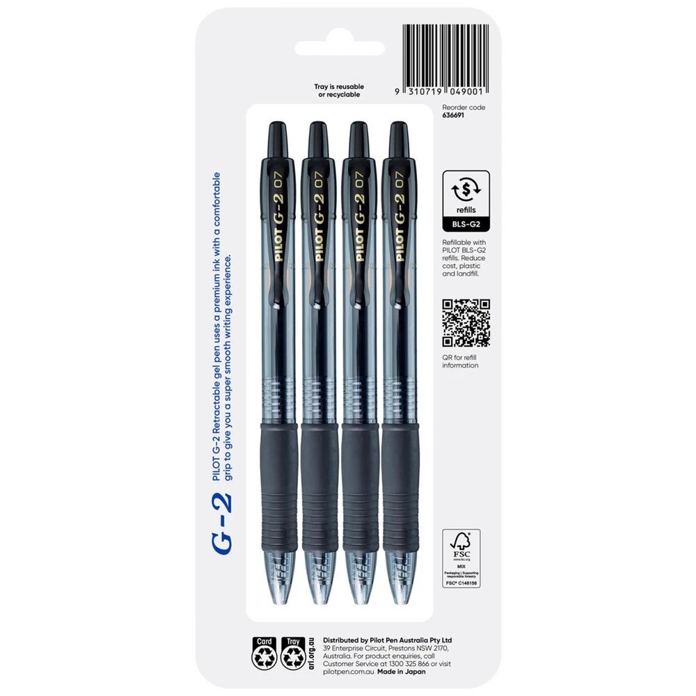 PILOT G2 Retractable Gel Pen Fine 0.7mm Black 4 Pack
