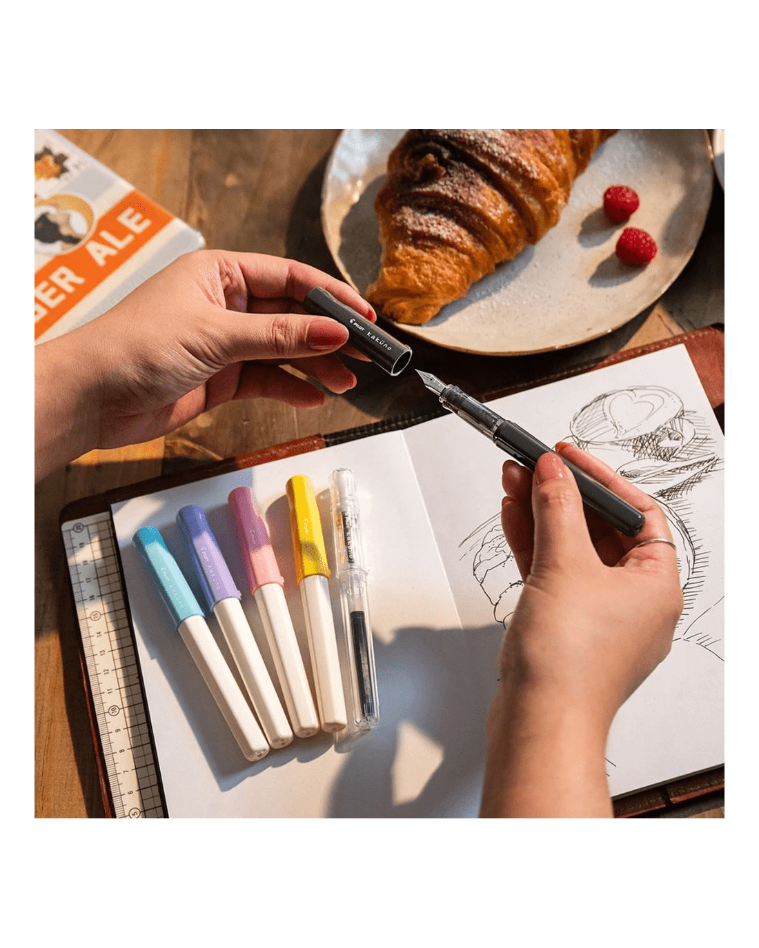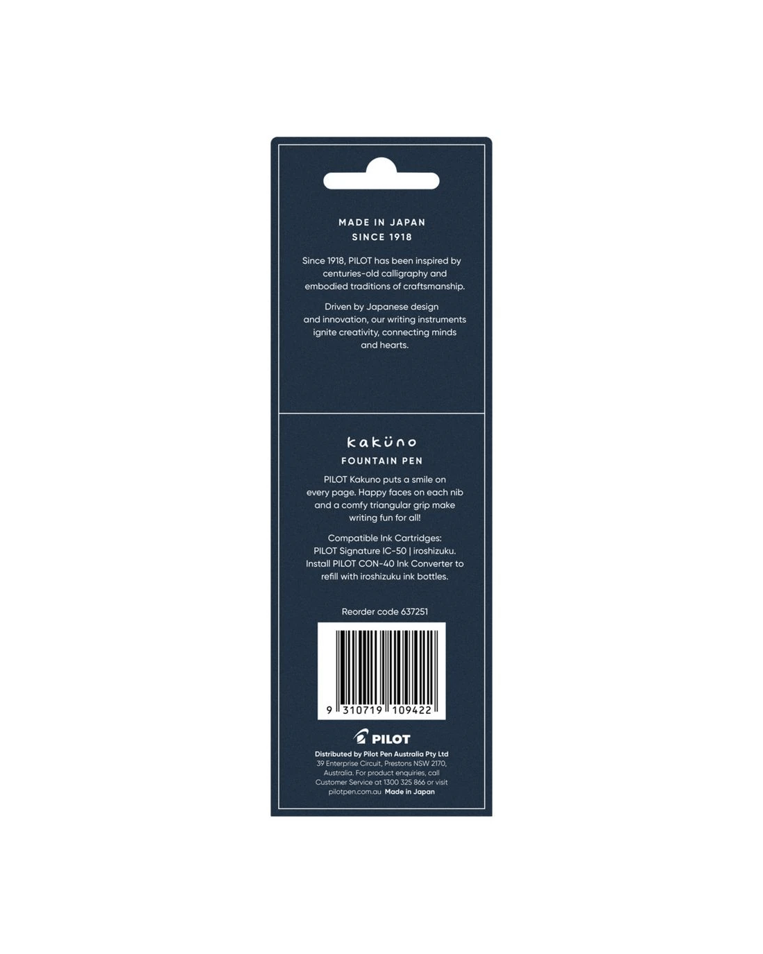 PILOT Kakuno Fountain Pens are ideal as your first fountain pen. Each pen has a smiley face engraved on the nib so you can ensure you're holding it at the correct angle and an angular barrel shape so you can write comfortably. The pens also have fun, coloured caps to help brighten up your day.