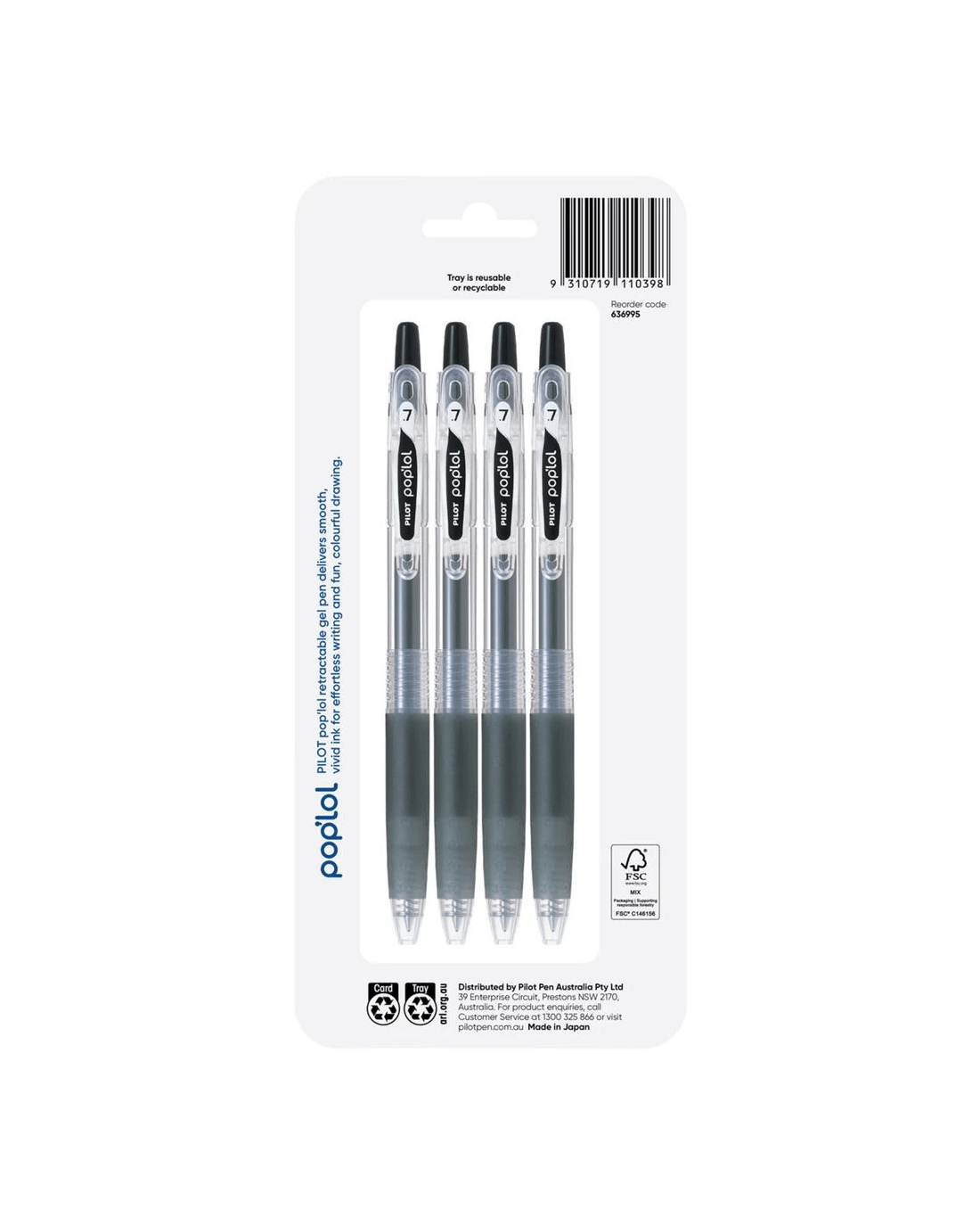 The PILOT pop'lol Retractable Gel Pen 0.7mm Assorted 4 Pack delivers smooth, vivid ink that’s ideal for note-taking, sketching, and drawing. Its fine 0.7mm tip ensures clean, consistent lines every time, while the pigment-based ink produces rich, lasting colour. Designed for comfort and convenience, each pen features a secure spring-loaded clip and an ergonomic grip for effortless writing. Perfect for students and artists alike, the pop’lol brings ease and creativity to everyday writing and creative projects. This pack comes with two Black, one Blue and one Red pen.