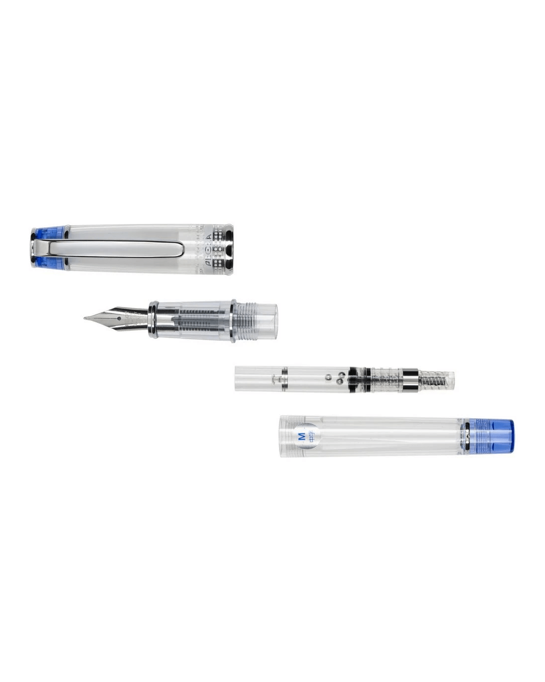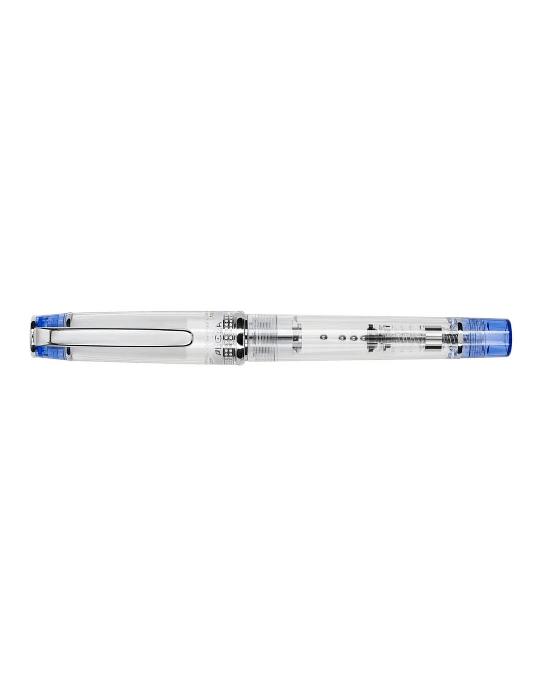 - This pen is clear and blue.