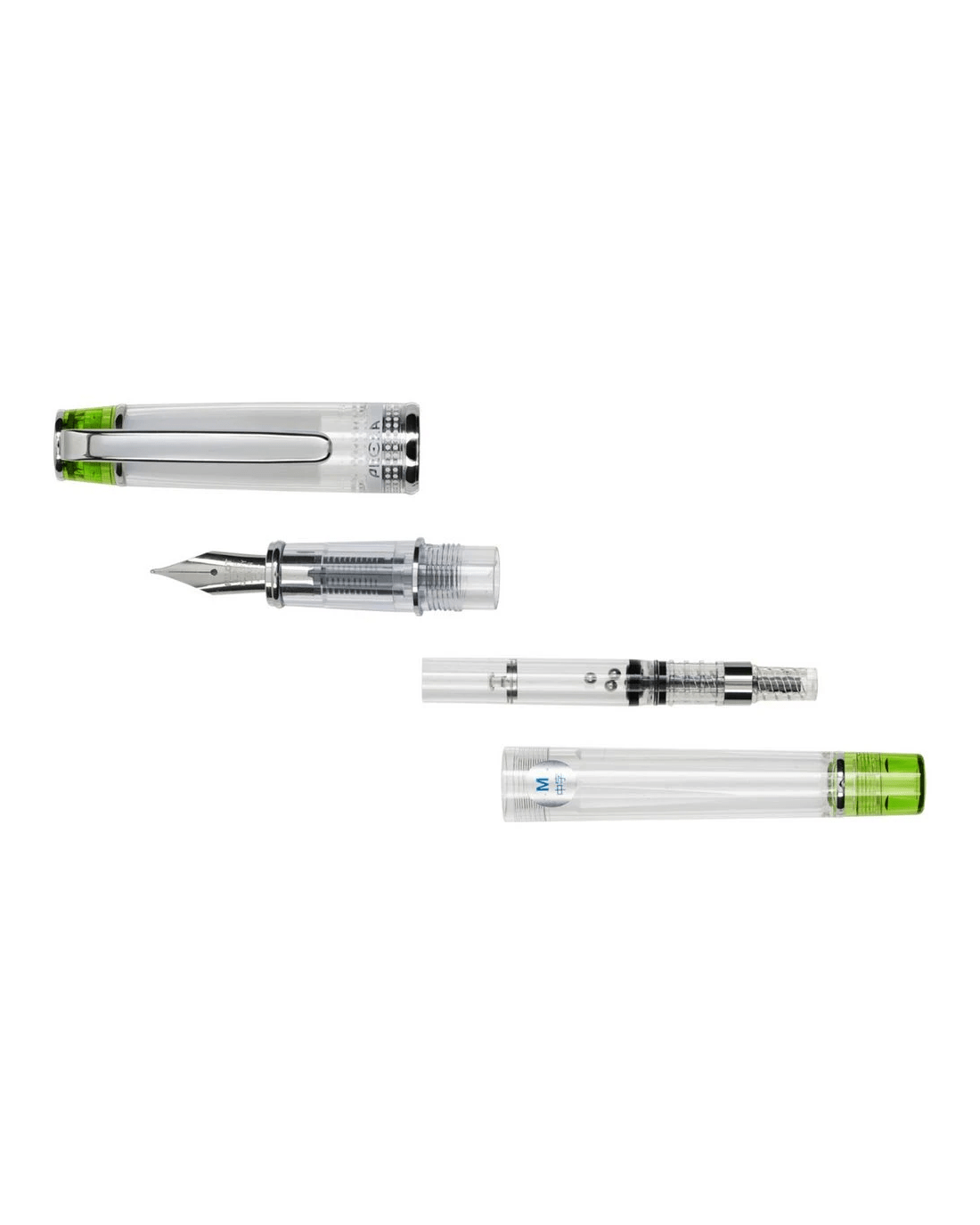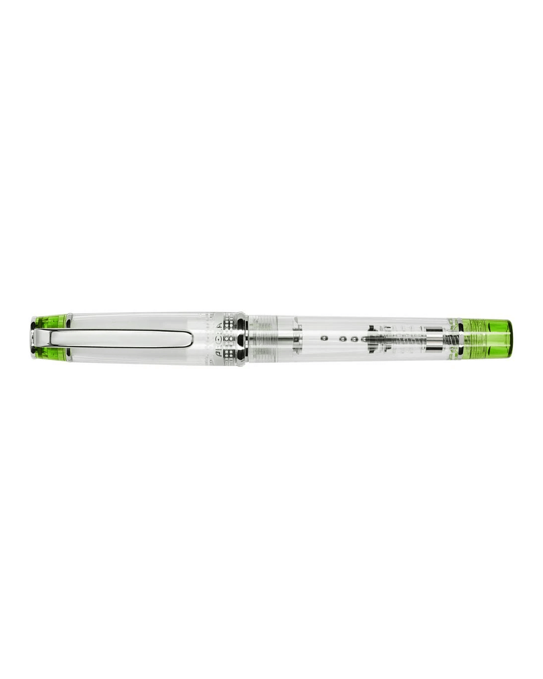 - This pen is clear and lime green.