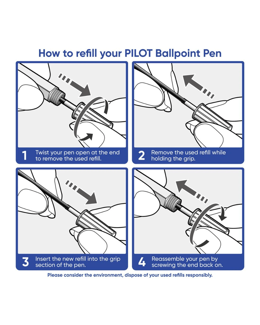 - This refill contains blue ink.