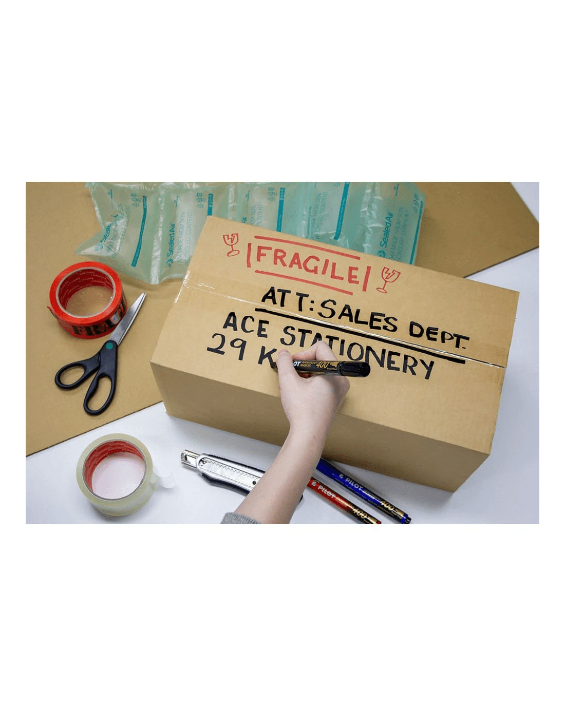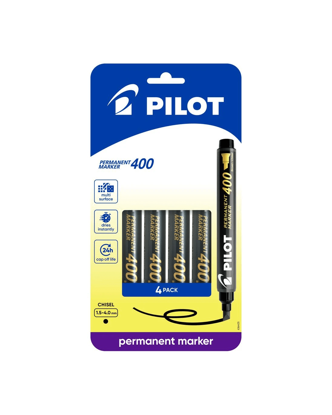 PILOT SCA400 Permanent Marker Chisel Black 4 Pack is built for dependable, long-lasting results on a wide range of surfaces. Its vivid, fade-resistant Black ink delivers strong, permanent marks on paper, cardboard, plastic and more. The versatile chisel tip allows for both bold strokes and fine lines, making it ideal for labelling, signage, and detailed tasks. With a 24-hour cap-off time, this marker won’t dry out quickly, ensuring it’s ready to perform whenever you need it. This pack includes four Black markers.