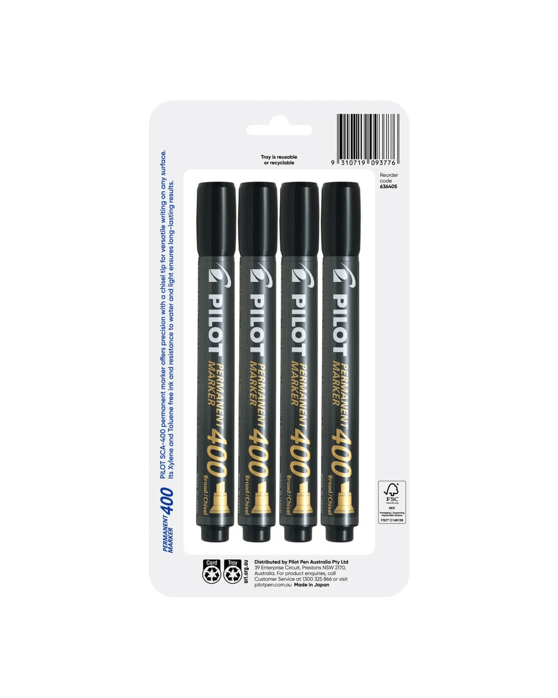 Sold by OfficeworksPILOT SCA400 Permanent Marker Chisel 1.5-4mm Black 4 Pack