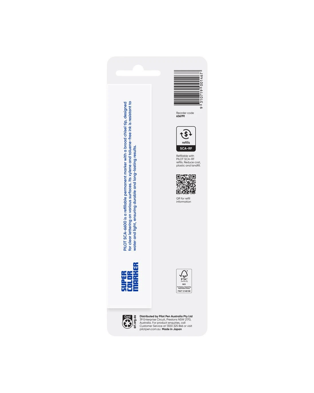 The PILOT SCA6600 Super Color Jumbo Permanent Marker is built for tough jobs. With a bold chisel nib, it’s perfect for large text, posters, and signage. Its quick-drying, vibrant ink is xylene-free, water-resistant, and works indoors or outdoors on paper, plastic, wood, steel, and more. Designed with a hard-wearing barrel, this marker is made to last, an essential tool for industrial users who need reliable performance on multiple surfaces.