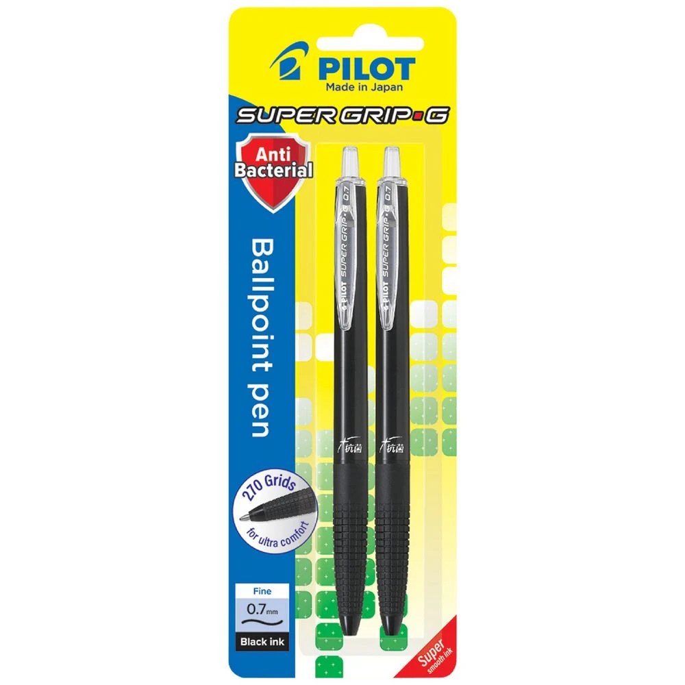 PILOT Super Grip G Antibacterial Ballpoint Pen Black 2 Pack