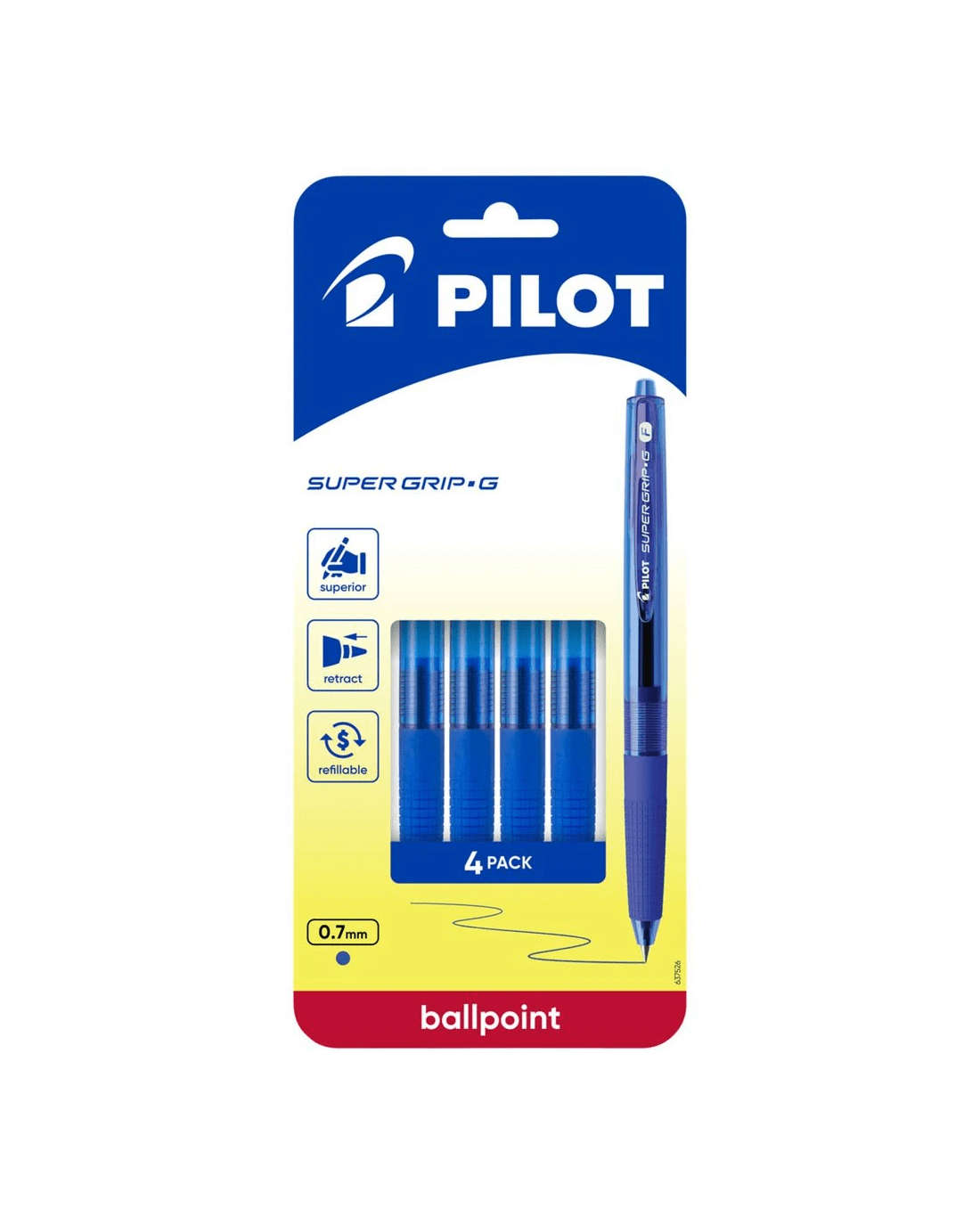 PILOT Super Grip G Retractable Ballpoint Pen 0.7mm Blue 4Pk