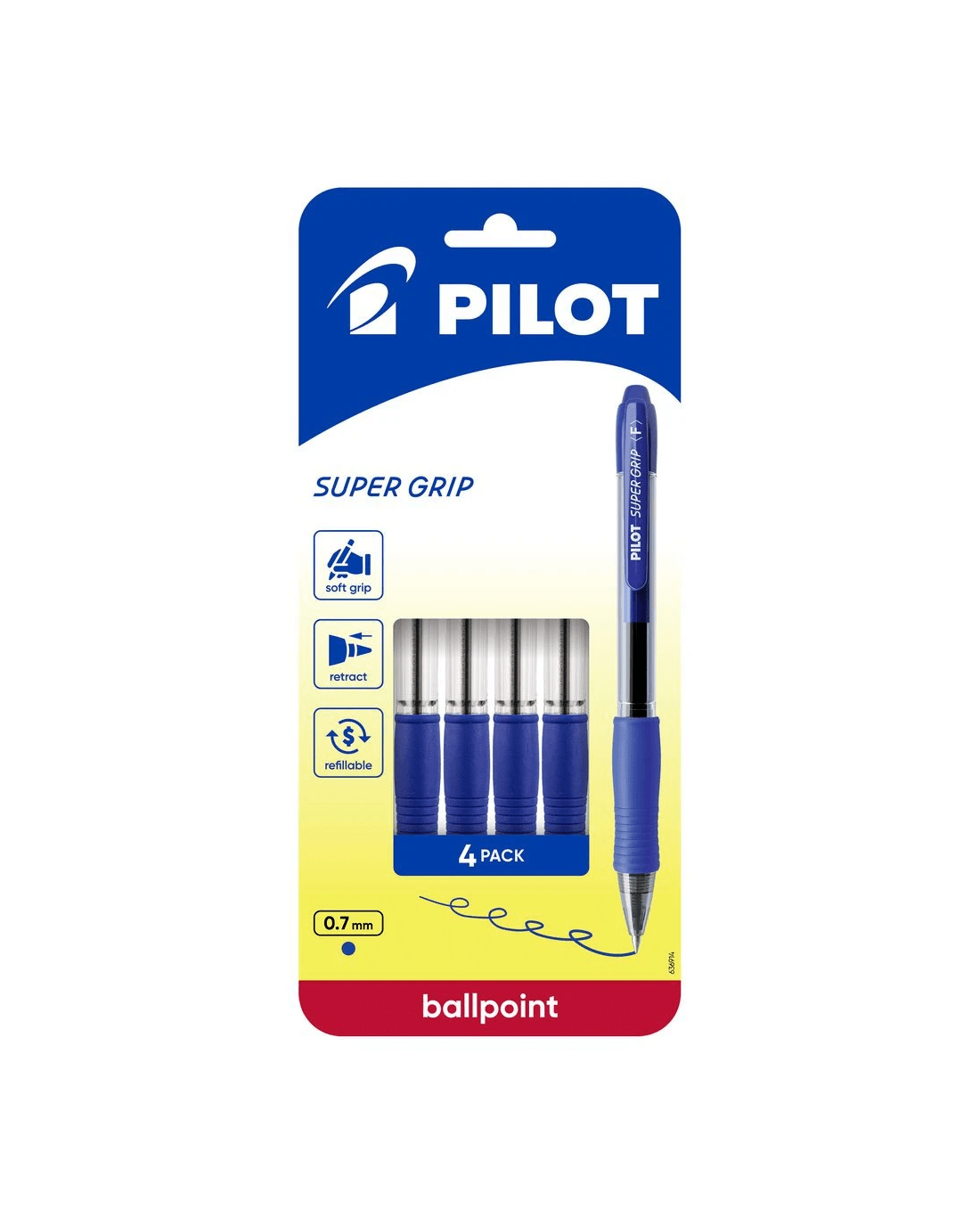 PILOT SuperGrip Retractable Ballpoint Fine 0.7mm Blue 4 Pack