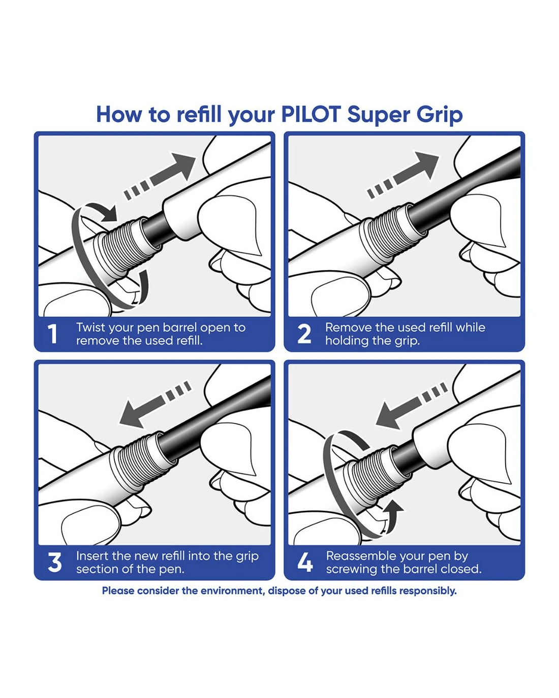 - These pens can be refilled with PILOT Rex/Super Grip Refills.
