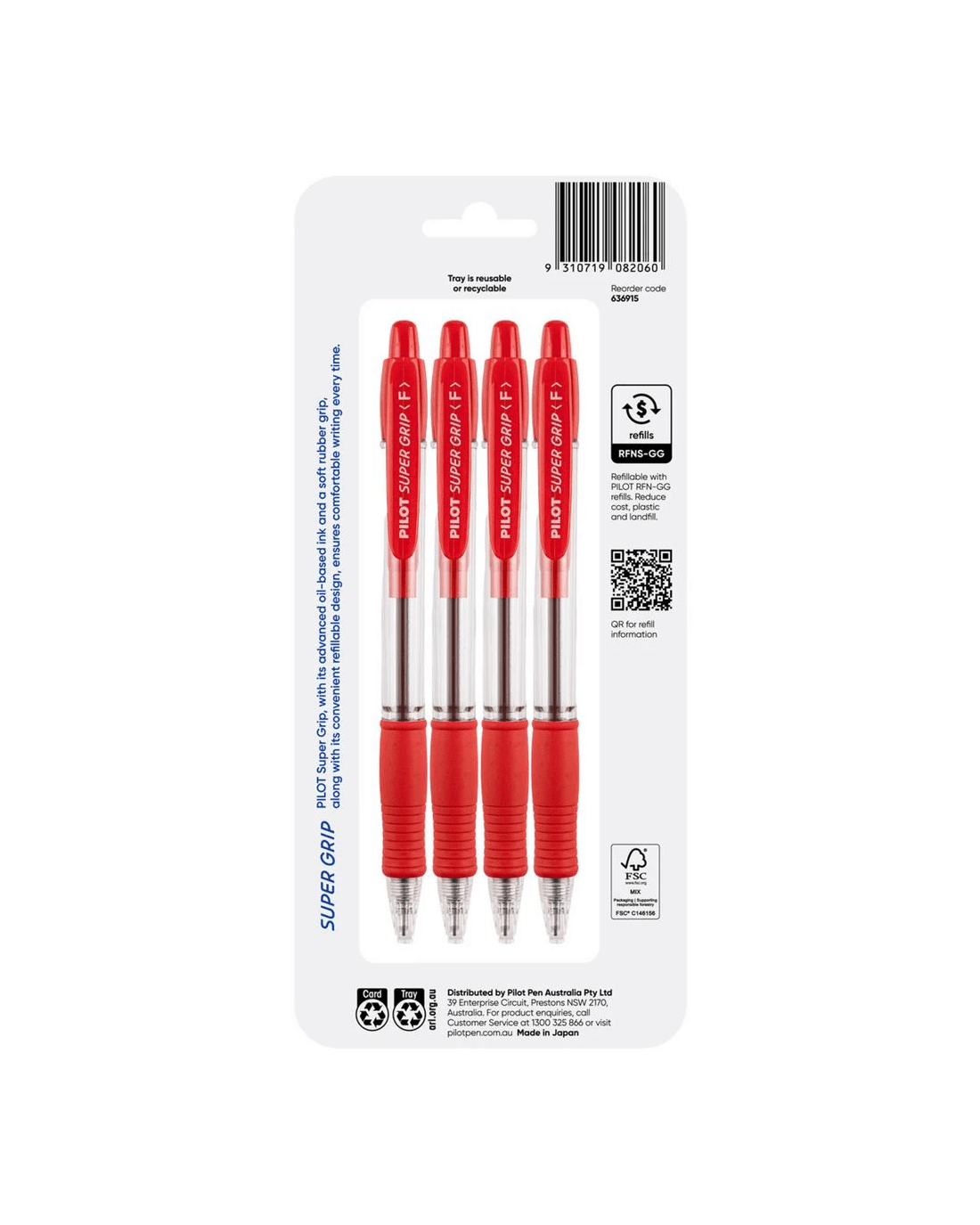Sold by OfficeworksPILOT SuperGrip Retractable Ballpoint Fine 0.7mm Red 4 Pack