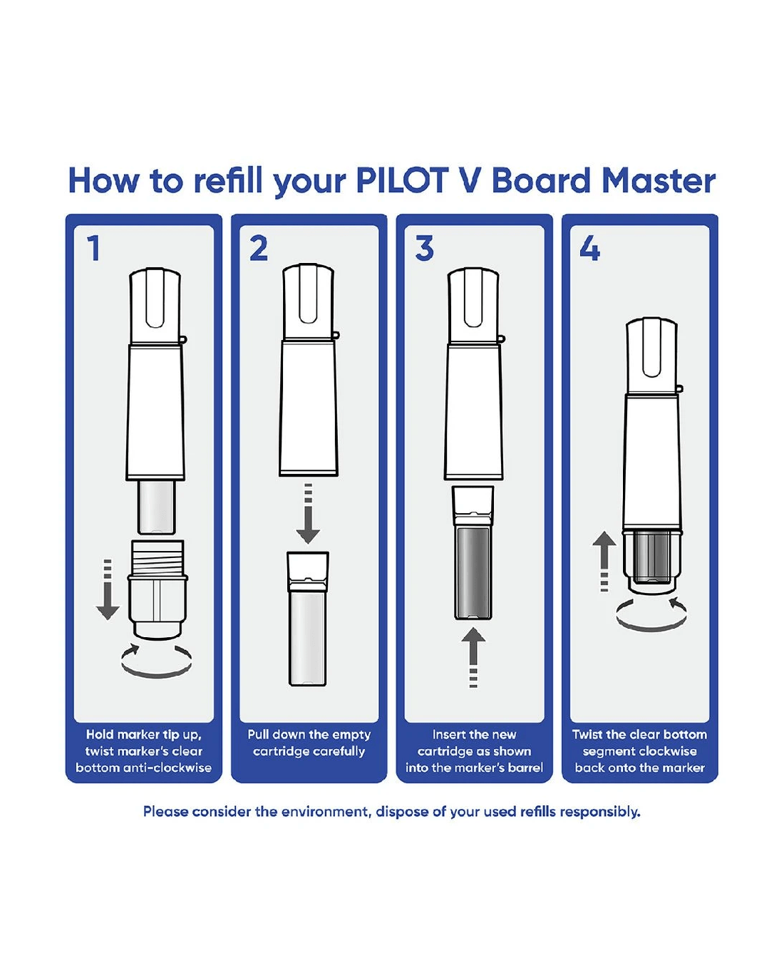 - They are designed for the PILOT V Board Master Whiteboard Marker.