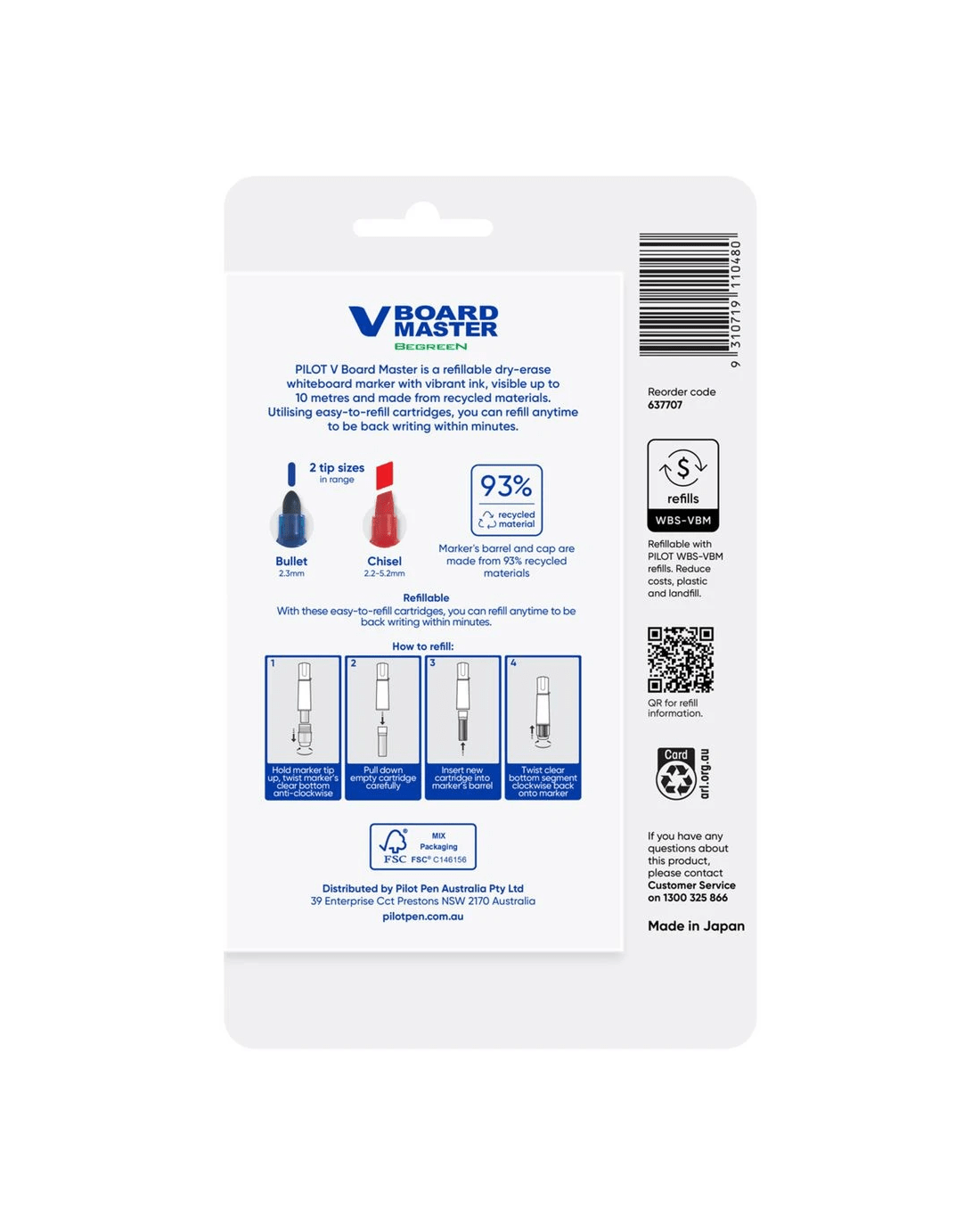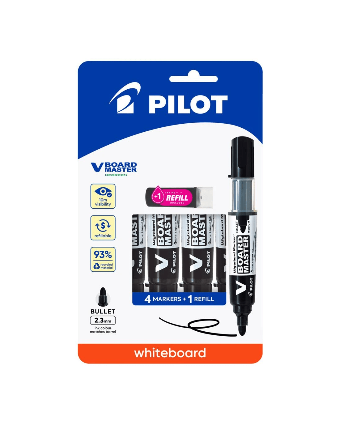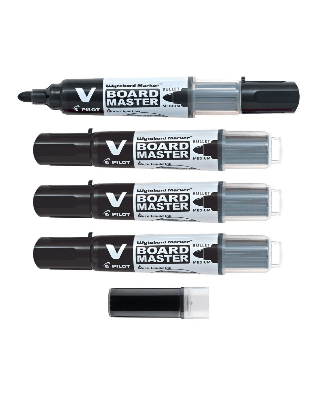 PILOT V Board Whiteboard Marker Bullet Black 4 Pk + 1 Refill