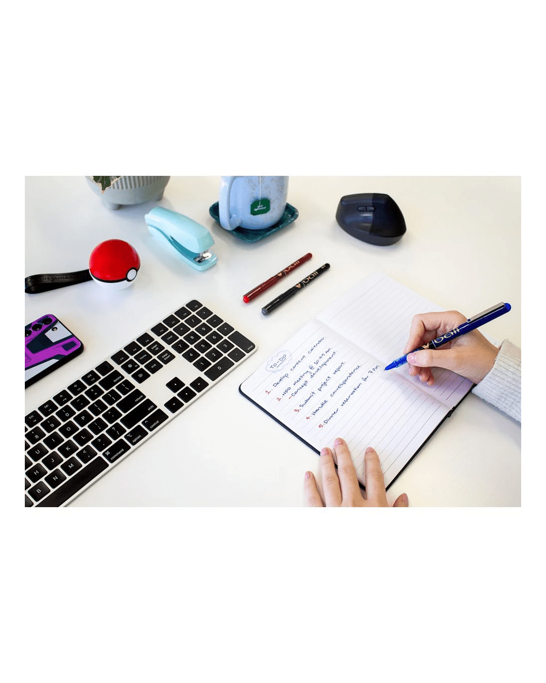 The PILOT V Rollerball Pen is perfect for those who demand precision and clarity in their writing. With pure liquid ink and a durable steel tip, these pens deliver smooth, vivid lines without bleed-through, making them ideal for notes, reports, or journaling. Enjoy consistent ink flow and professional results every time.