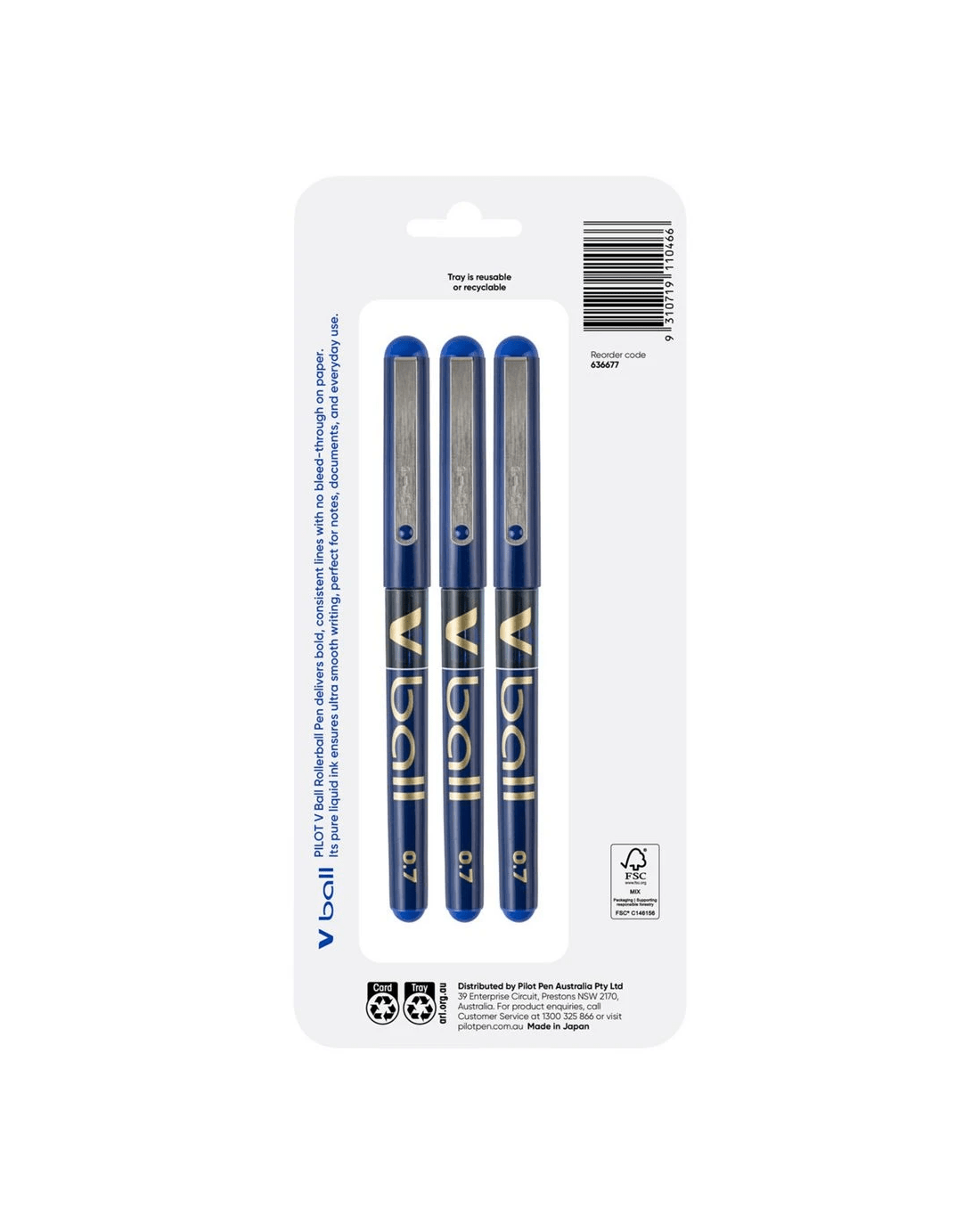 PILOT V Rollerball Pen 0.7mm Blue 3 Pack