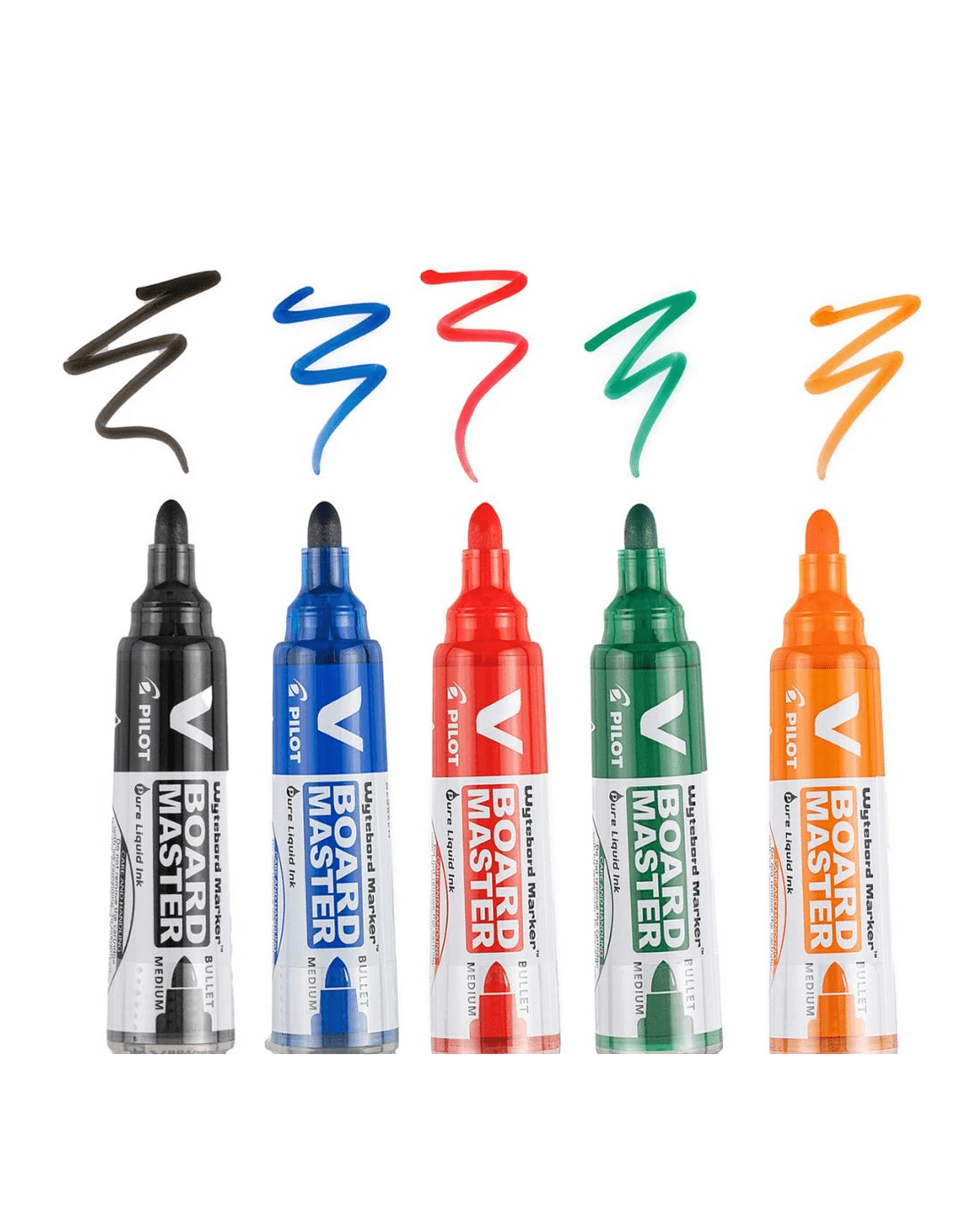 Write with a beautiful boldness using the PILOT VBoard Master Whiteboard Marker. It has a bullet tip for precise 2.3 mm lines in your lettering, and the twin pipe feed system ensures that there's a continuous ink flow during use. They are dry erasable, making all info easily removed after brainstorm sessions.