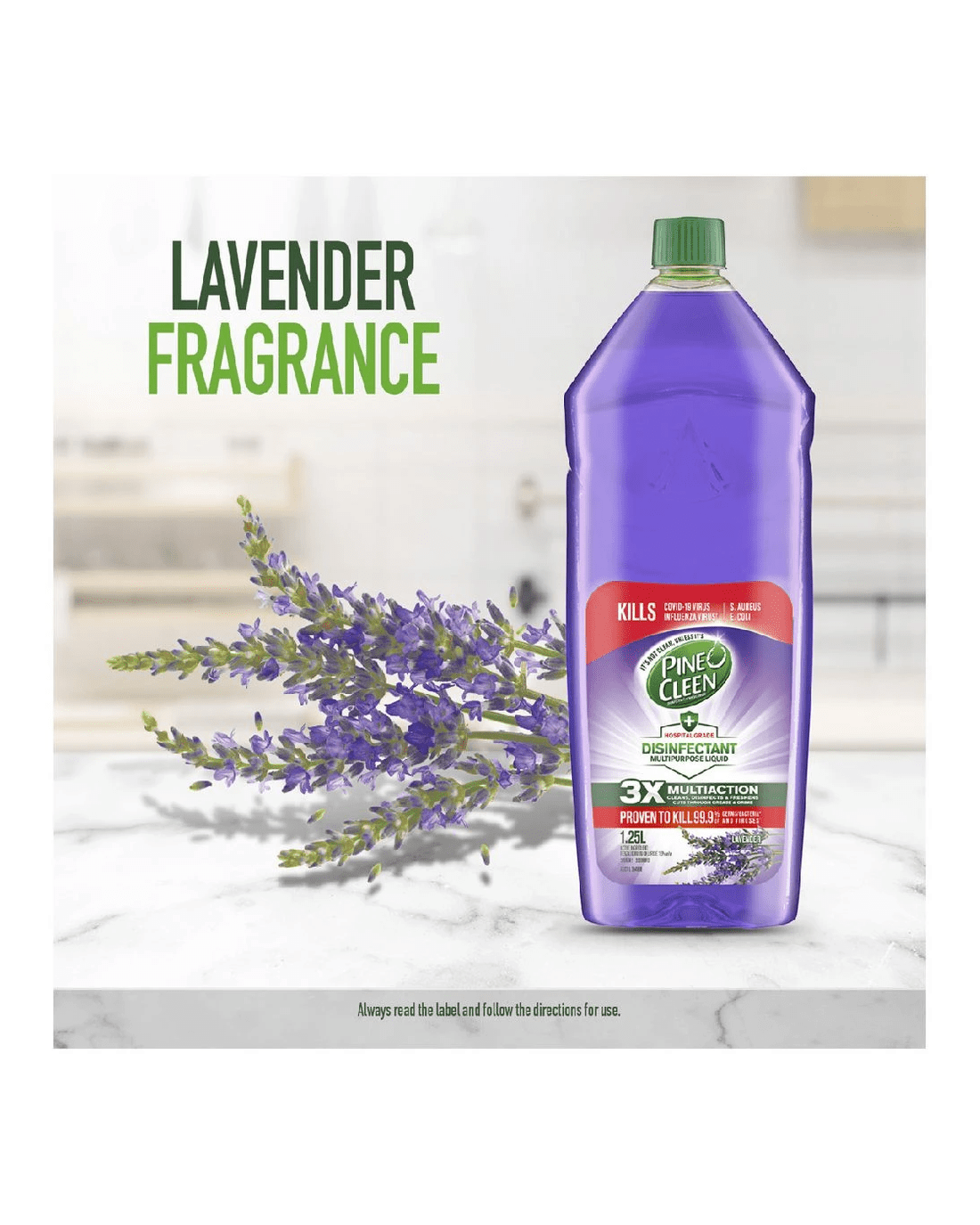 This Pine-O-Cleen Disinfectant is a great option for killing germs, cleaning surfaces, and eliminating grime and dirt. This bottle holds 1.25 L of hospital-grade disinfectant that leaves a pleasant, lavender fragrance upon use.