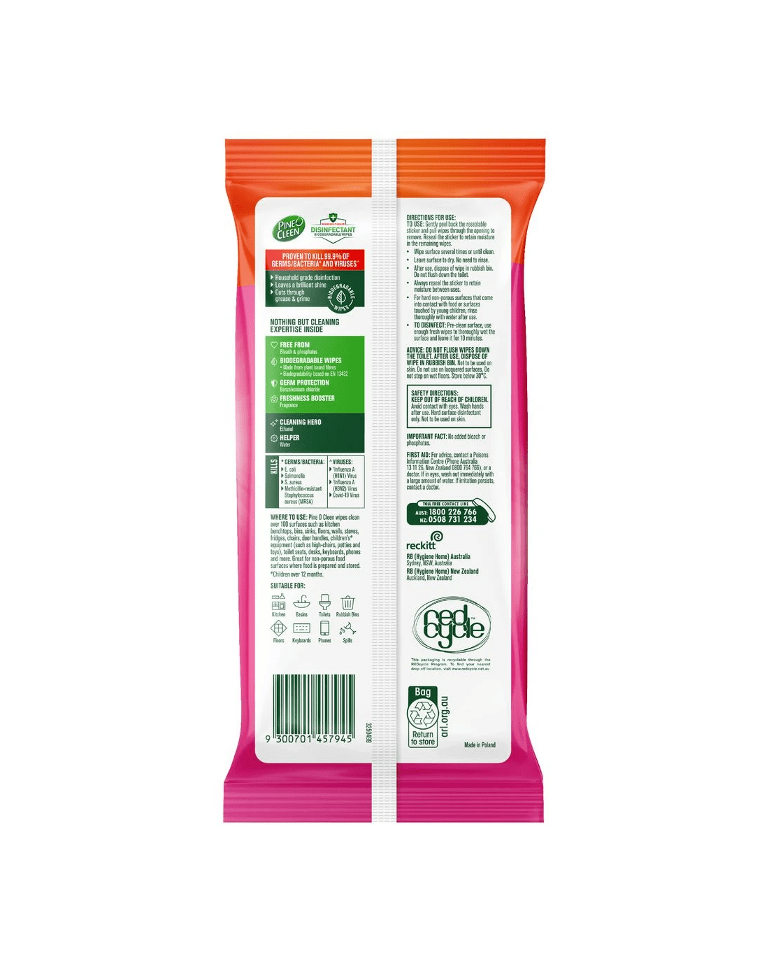 These Pine O Cleen Disinfectant Surface Wipes have been designed to cut through grease and grime to kill 99.9% of germs and bacteria. Featuring a household grade disinfectant, these multipurpose wipes are suitable for cleaning up to 100 surfaces including tables, benchtops and workspaces.