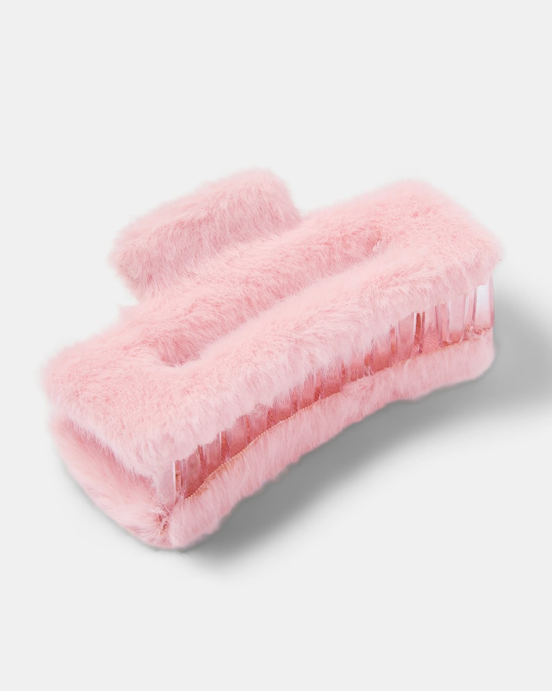 Pink Faux Fur Rectangle Claw Hair Clip