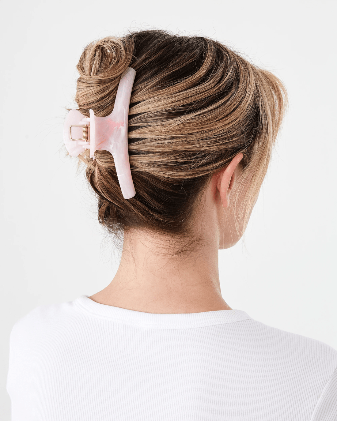 The Pink Matte Marble Claw Hair Clip features a soft marble-effect finish in a pink tone. Designed to hold hair neatly in place, it adds a simple yet stylish touch to everyday hairstyles.