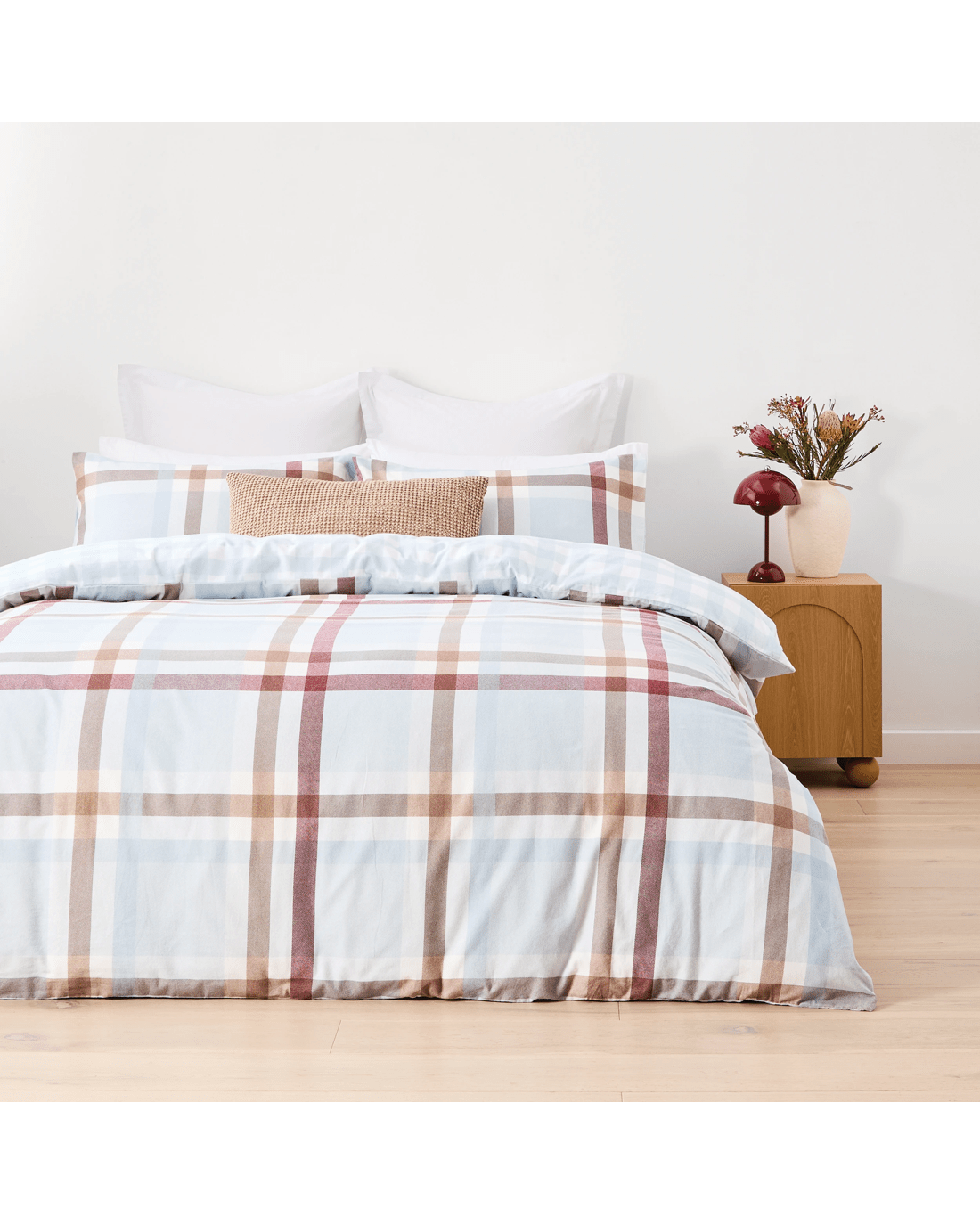 Cosy bedroom style starts with this Plaid Flannelette Cotton Reversible Quilt Cover Set that adds warmth and a soft touch to your bed. The flannelette fabric helps create a snug, inviting space for comfortable sleep on cooler nights.