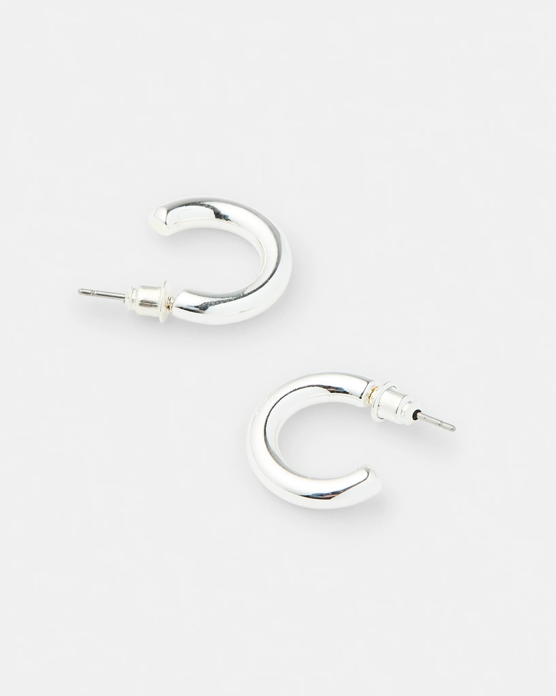 Plain Hoop Earrings - Silver Tone