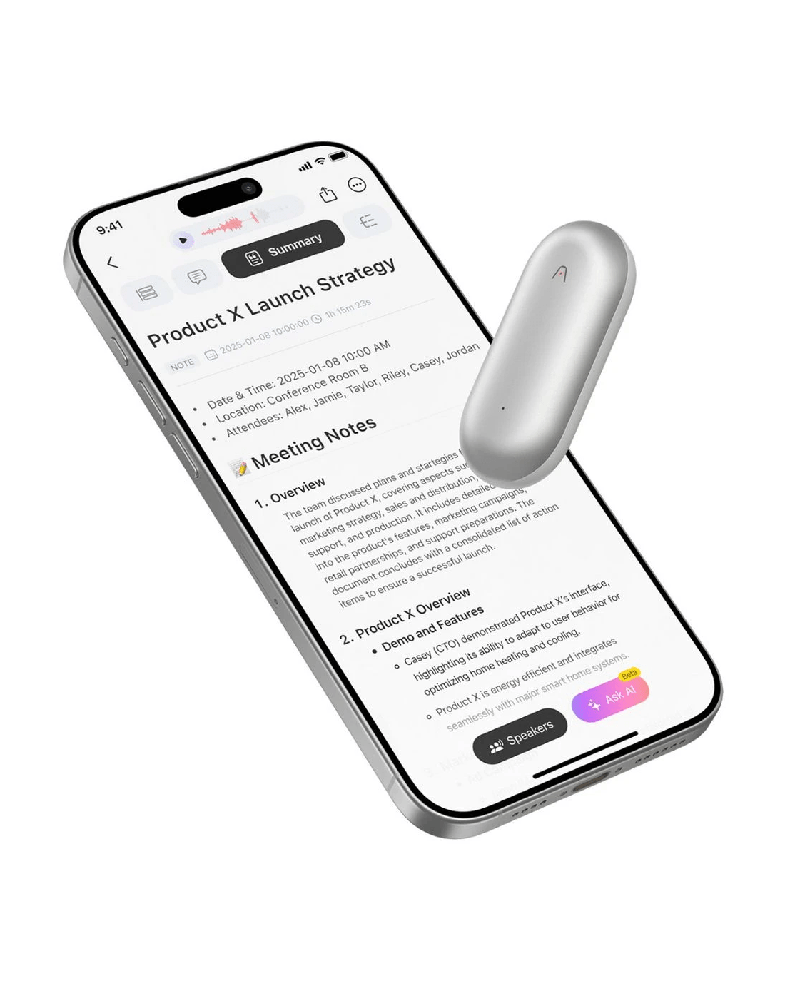 • This device uses ChatGPT integration to transcribe and summarise voice recordings instantly.