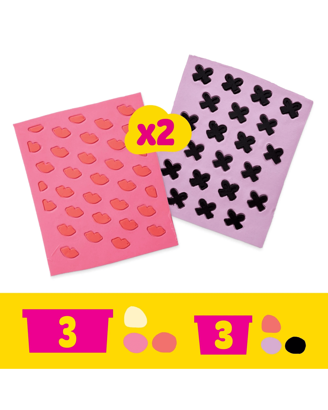 - 2 PRE-MADE PLAY-DOH PATTERN SHEETS: The pre-made sheets are 2.46 ounces of flattened Play-Doh modeling compound that looks like pretend fabric with fun designs to make doll clothes (contains wheat)