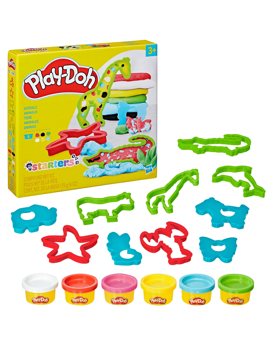 - Animals: 6 x cans of Play-Doh Brand Modeling Compound and 10 x shape cutters