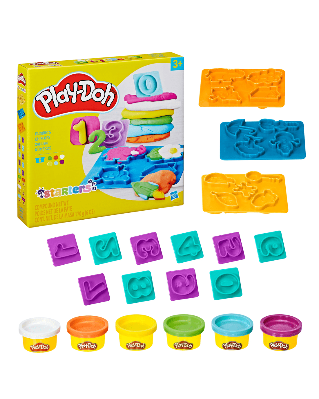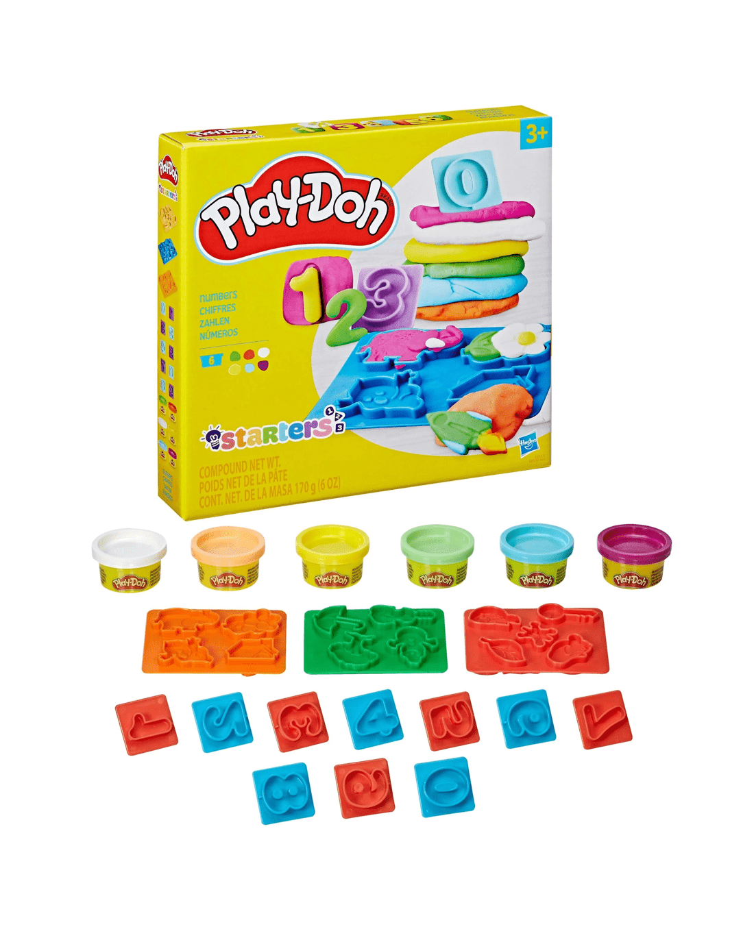 - Numbers: 6 x cans of Play-Doh Brand Modeling Compound and 13 x shape cutters