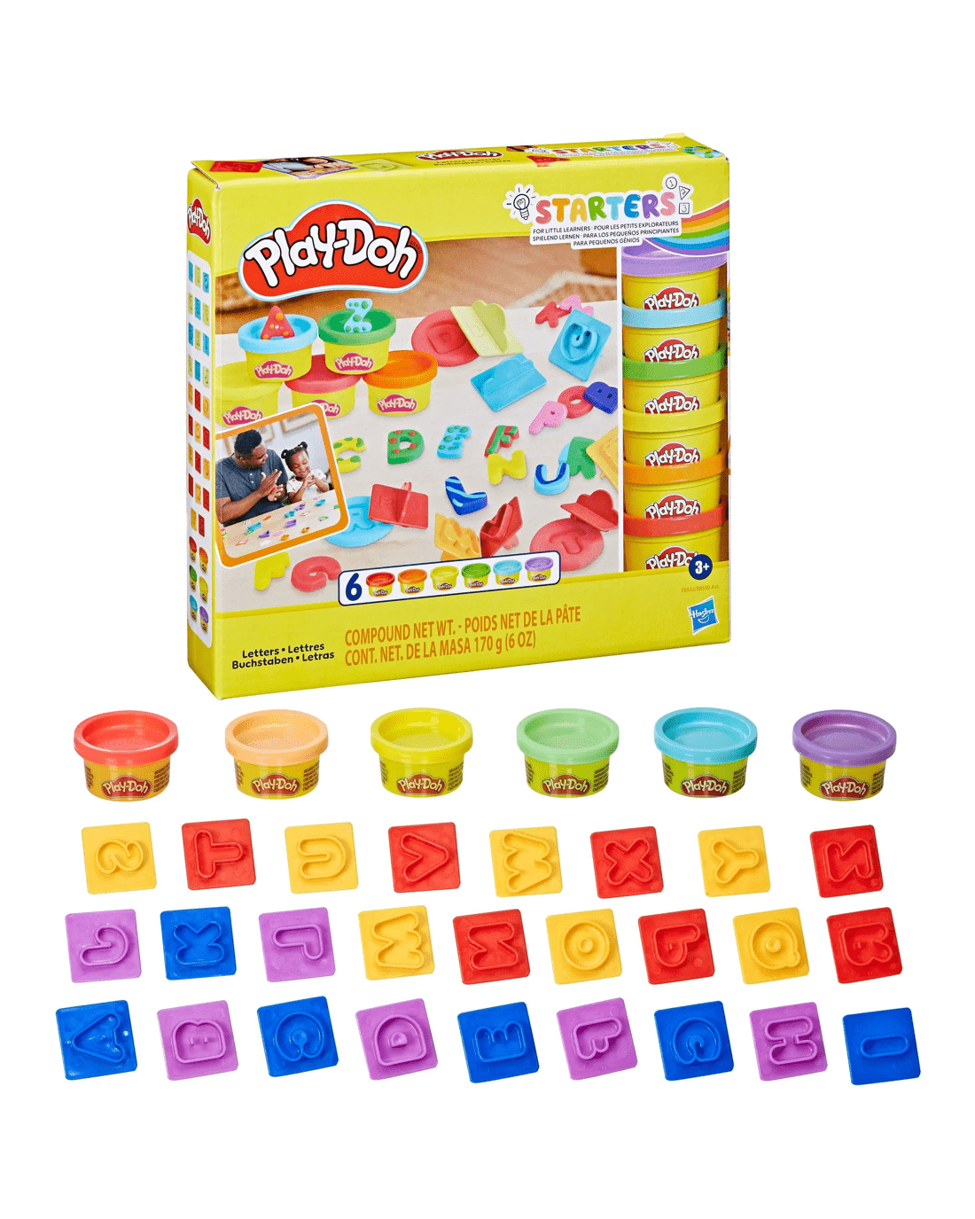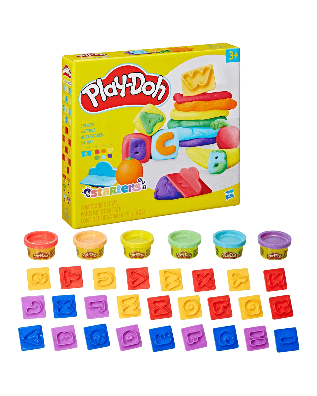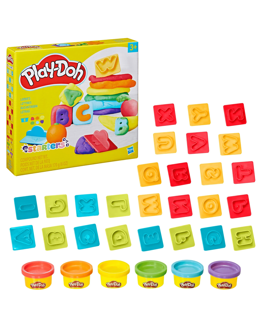 - Letters: 6 x cans of Play-Doh Brand Modeling Compound and 25 x shape cutters
