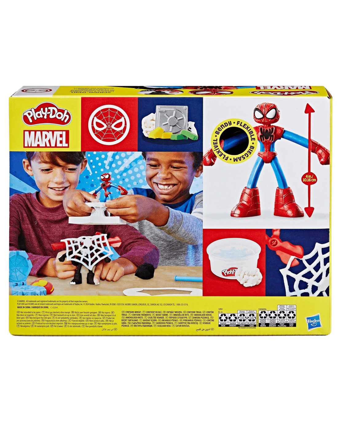 - Includes: 2 bendy figures, 3 attachable tools, web launcher, web shield mold, safe mold, roller, and 4 cans of Play-Doh Brand Modeling Compound (net weight 5 oz/142 g).